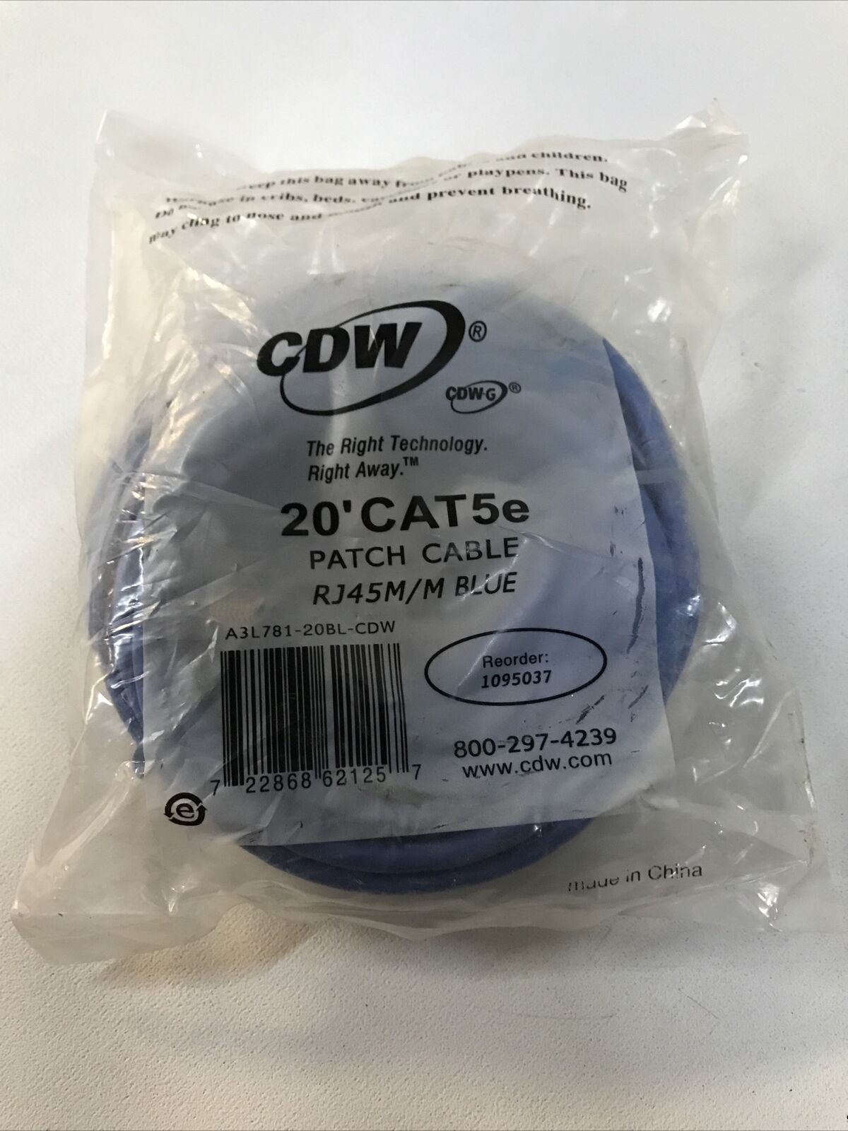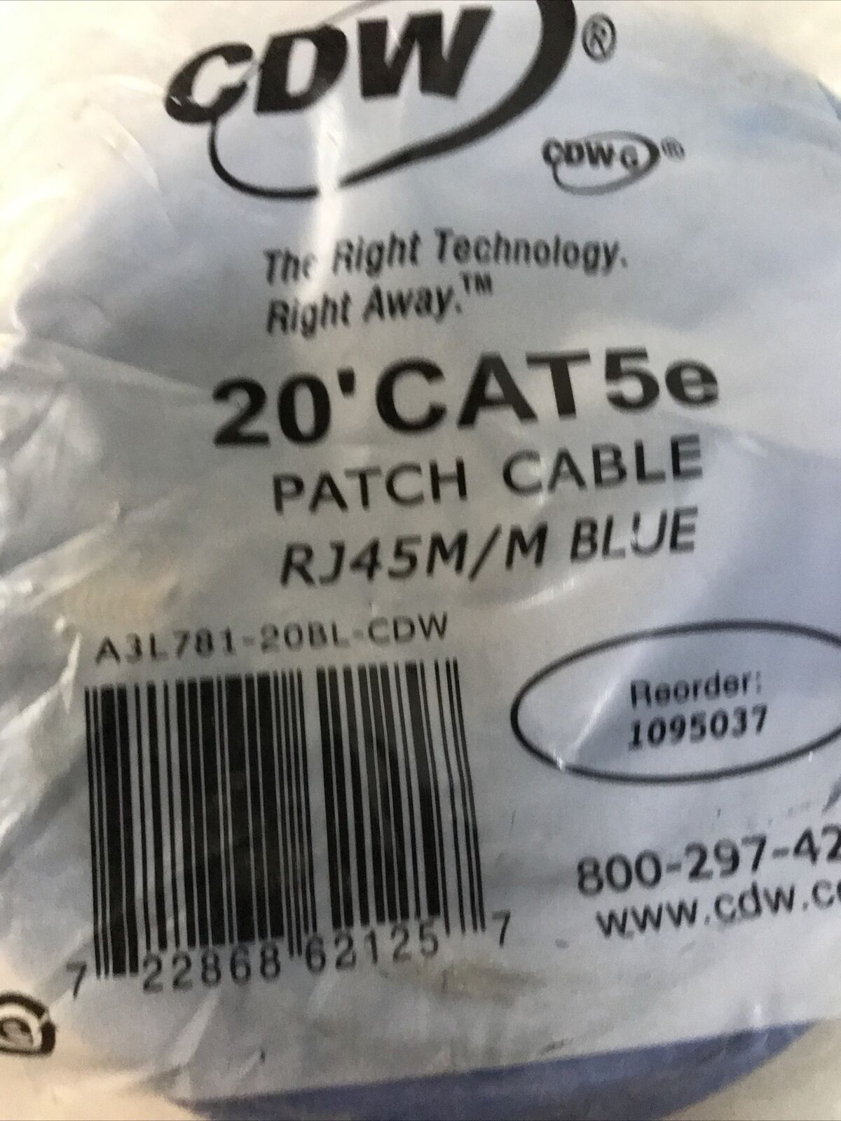 CDW Cat5e Network Cable RJ-45 Male 20ft Blue A3L781-20BL-CDW New.