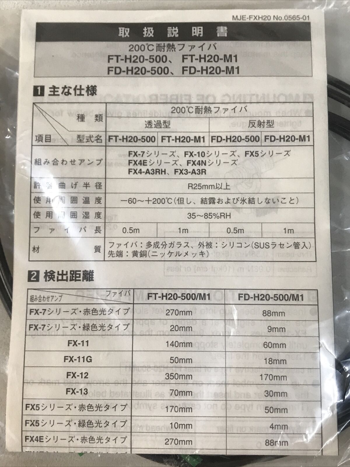 Sunx FT-H20-M1 Fiber Optic Cable.
