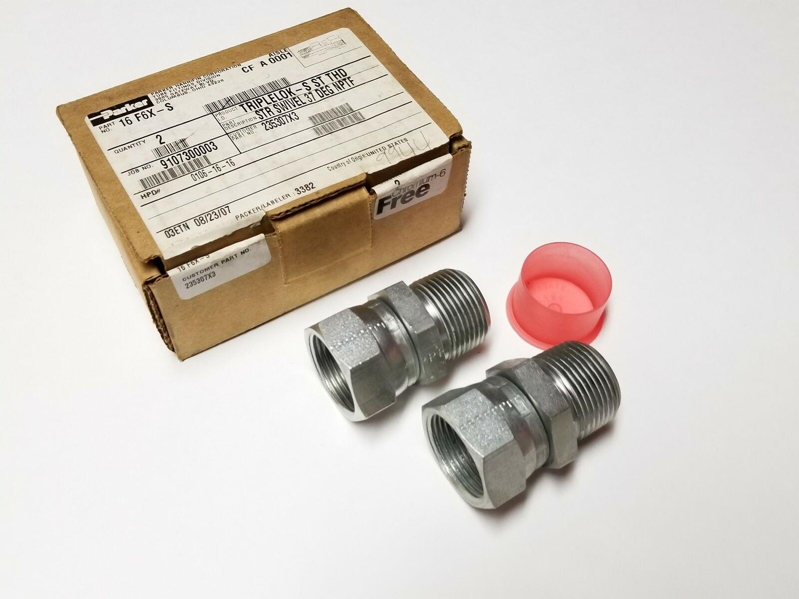 Lot of 2 Parker 16 F6X-S Triplelok-S ST THD Straight Swivel NPTF Hydraulic Fitti
