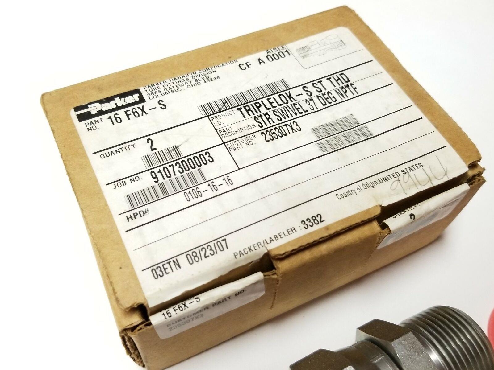 Lot of 2 Parker 16 F6X-S Triplelok-S ST THD Straight Swivel NPTF Hydraulic Fittings
