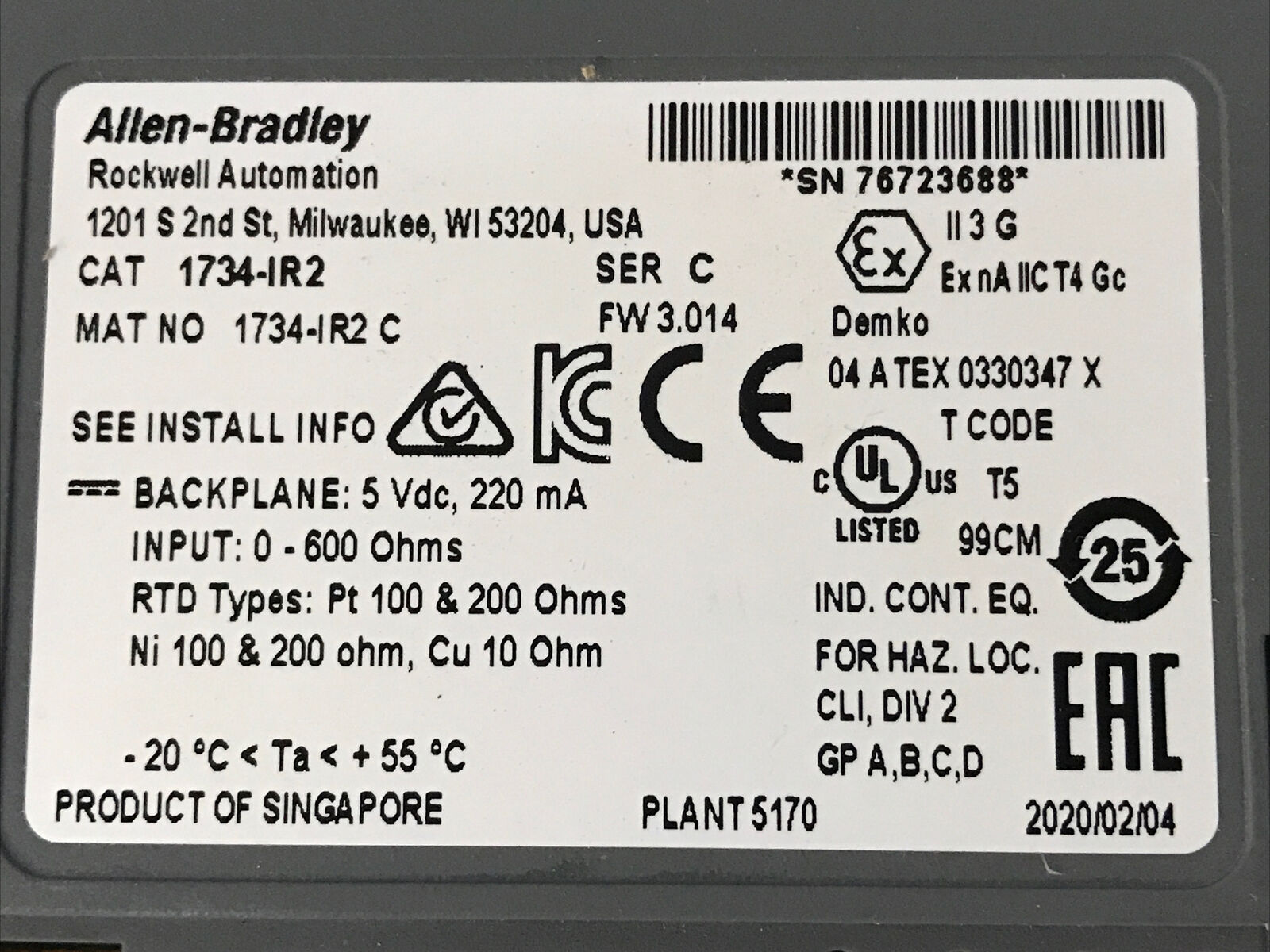 Allen Bradley 1734-IR2 Ser. C POINT I/O 2 Point RTD Input Module.