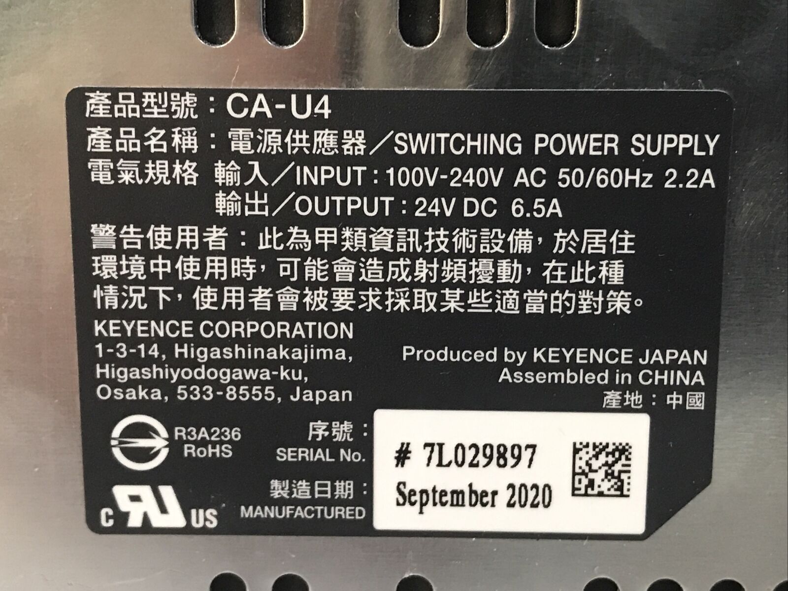 Keyence CA-U4 Ultra Compact Power Supply IN: 100-240V AC 2.2A Out: 24V DC 6.5A