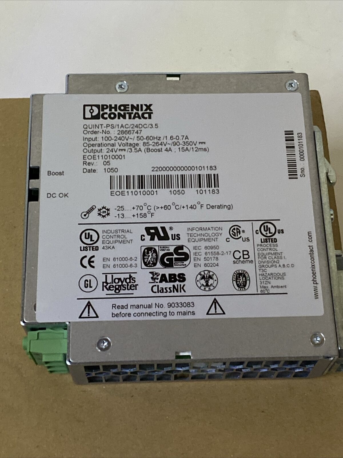 PHOENIX CONTACT 2866747 Power Supply Unit QUINT-PS/1AC/24DC/3.5