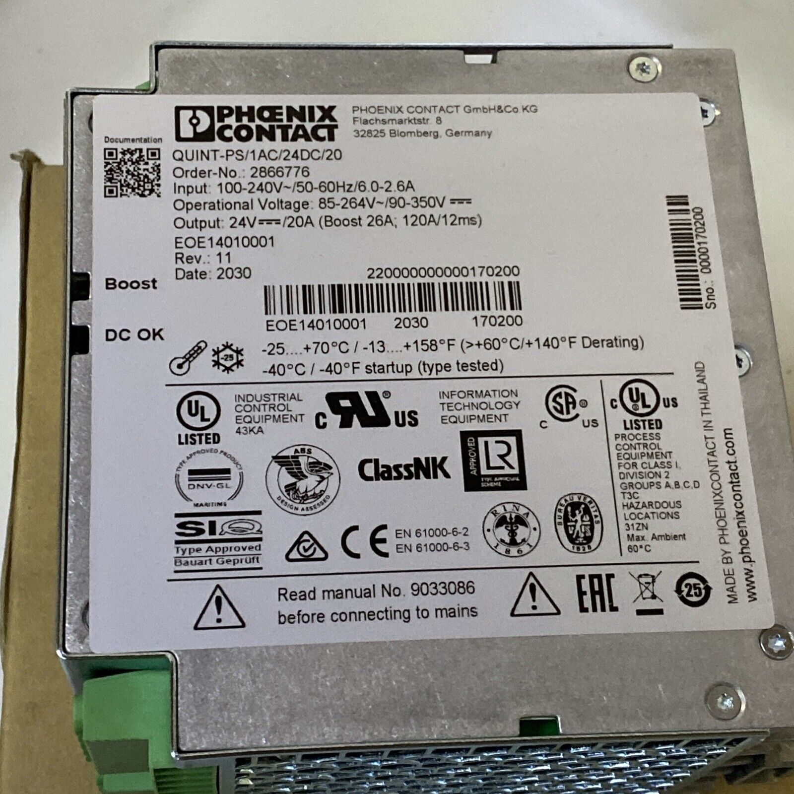 Phoenix Contact QUINT-PS/1AC/24DC/20 2866776 Power Supply