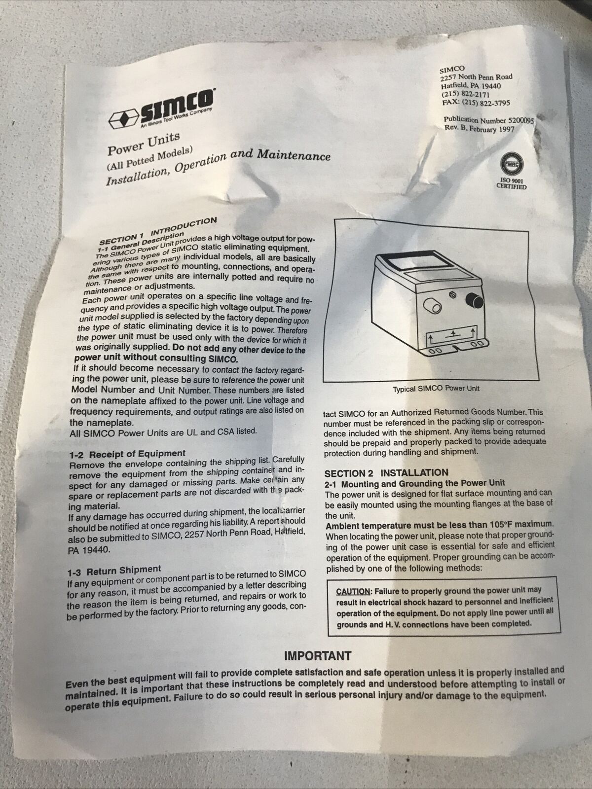 Simco D167Q 4000074 Static Eliminator Power Supply