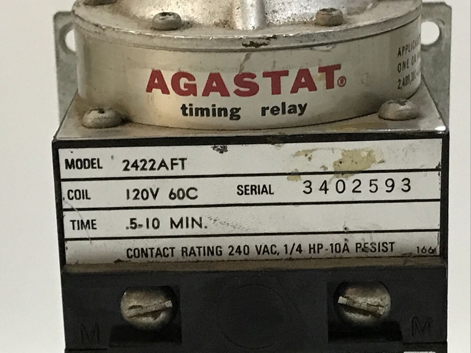Agastat 2422AFT Time Delay Relay 0.5-10min 120VDC 60C.