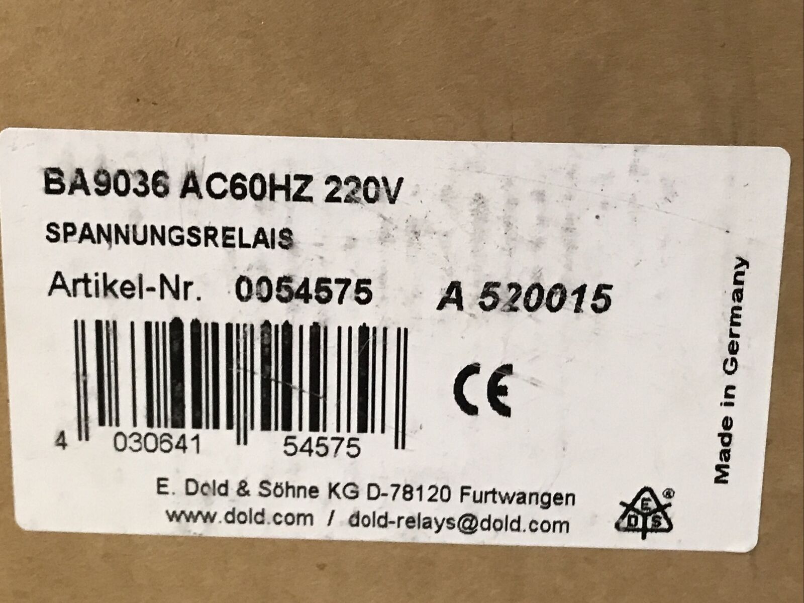 *SEALED* E. Dold & Söhne BA9036 AC60HZ 220V Voltage Relay
