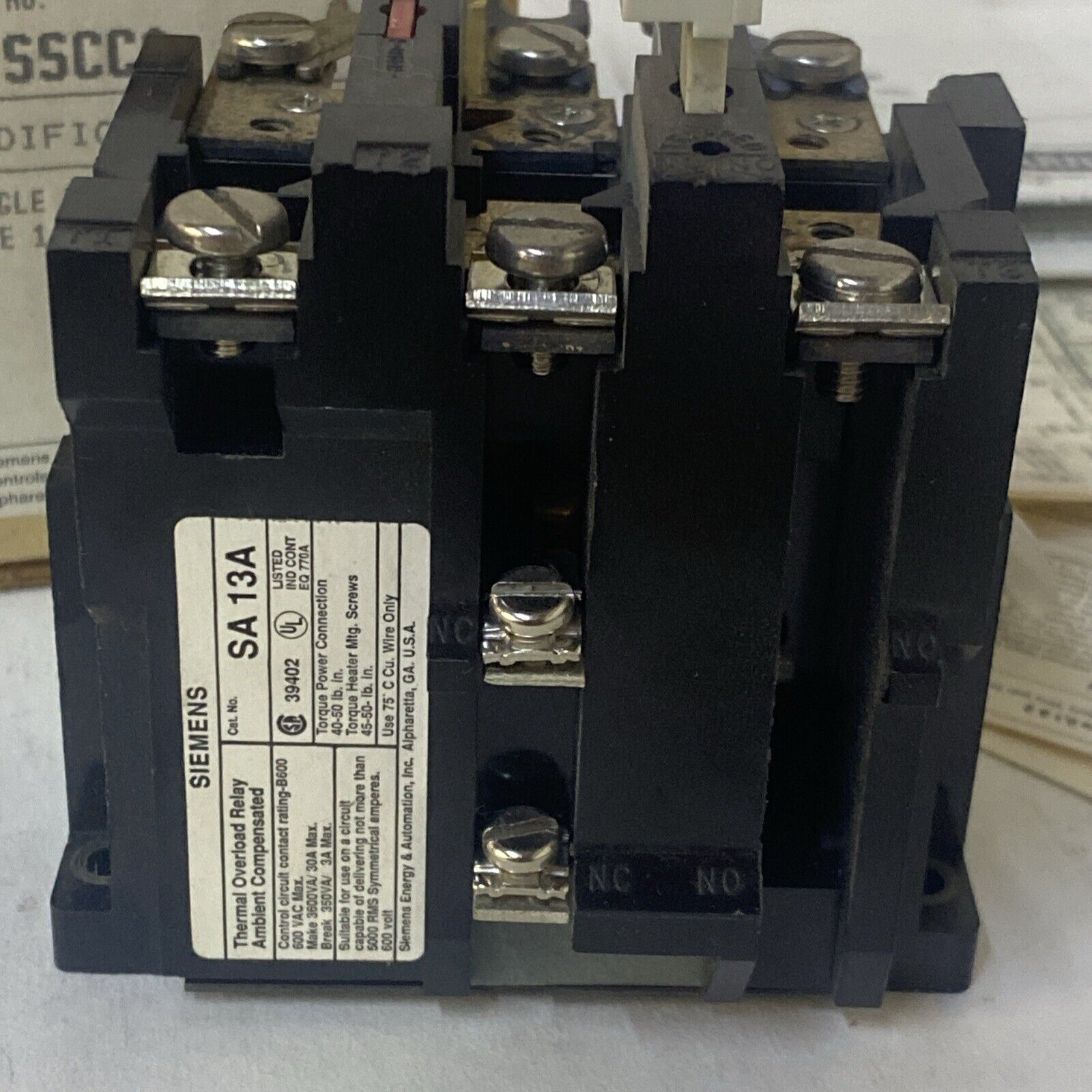 Siemens SA 13A Thermal Overload Relay 600vac