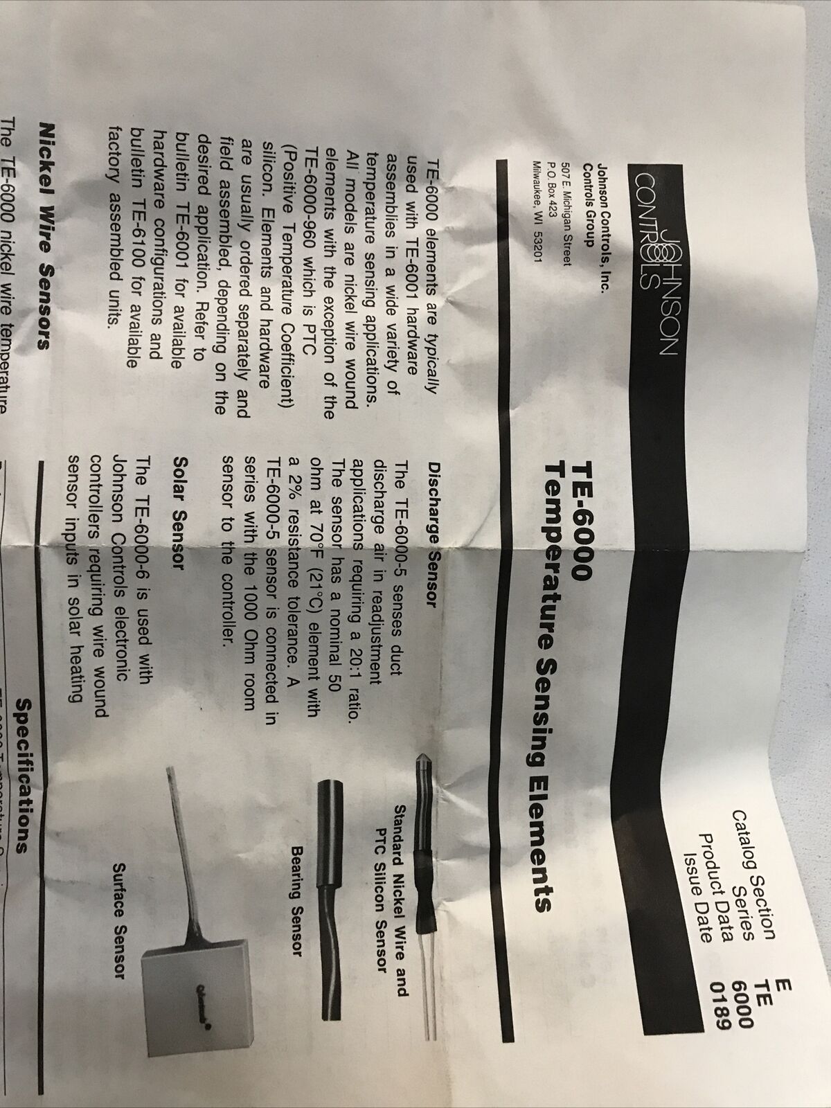 Johnson Controls TE-6000 Temperature Sensor TE6000 PTC Silicon Sensor.