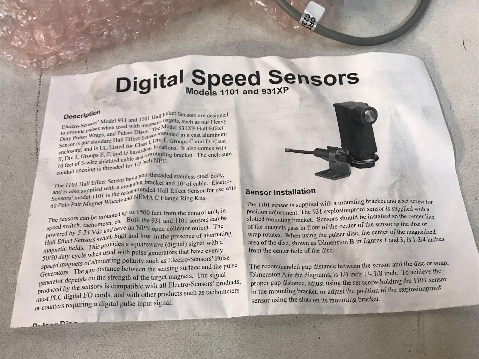 *LOT OF 2* Electro-Sensors 775-110003 1101 Digital Shaft Speed Sensor 5-24VDC 4A 10’ Cable.