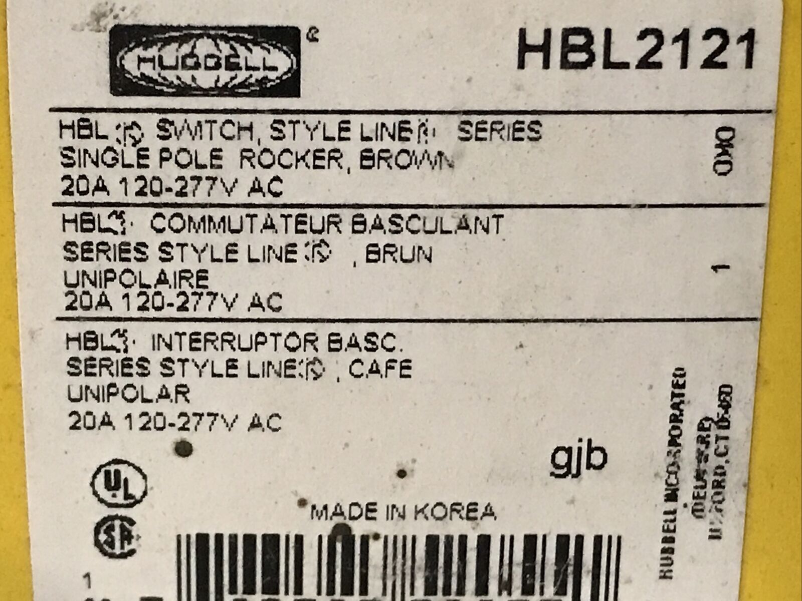 *Lot of 2* Hubbell HBL2121 Brown Rocker Switch 1 Pole 20A 120-277V