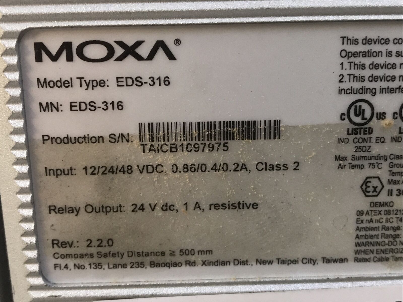 MOXA EDS-316 EDS316 Industrial Ethernet Switch Input:12/24/48VDC 16 Port.