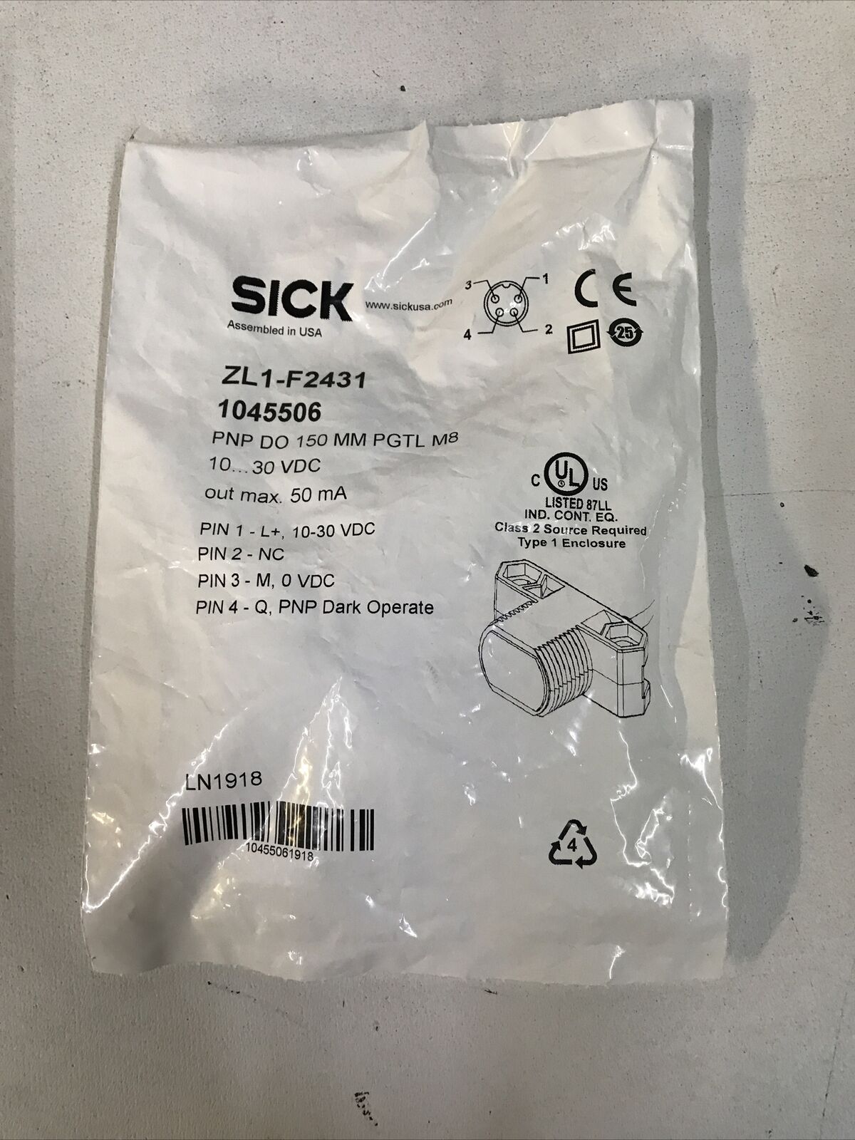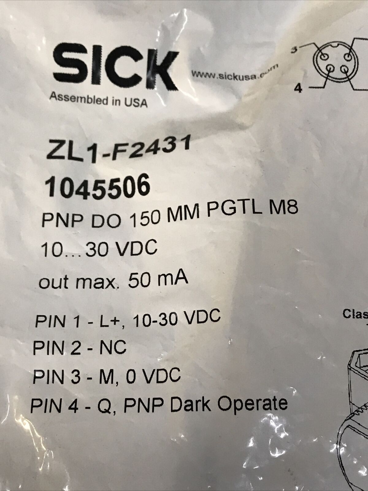 SICK ZL1-F2431 Sensor Switch 10-30 VDC 50 mA PNP DO 150 mm PGTL M8.