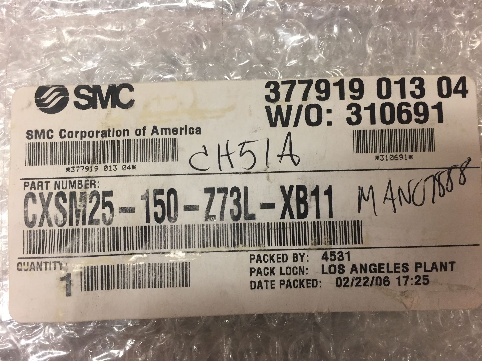 SMC CXSM25-150-XB11 Guided Cylinder, Dual Rod w/ 2 D-Z73 sensors