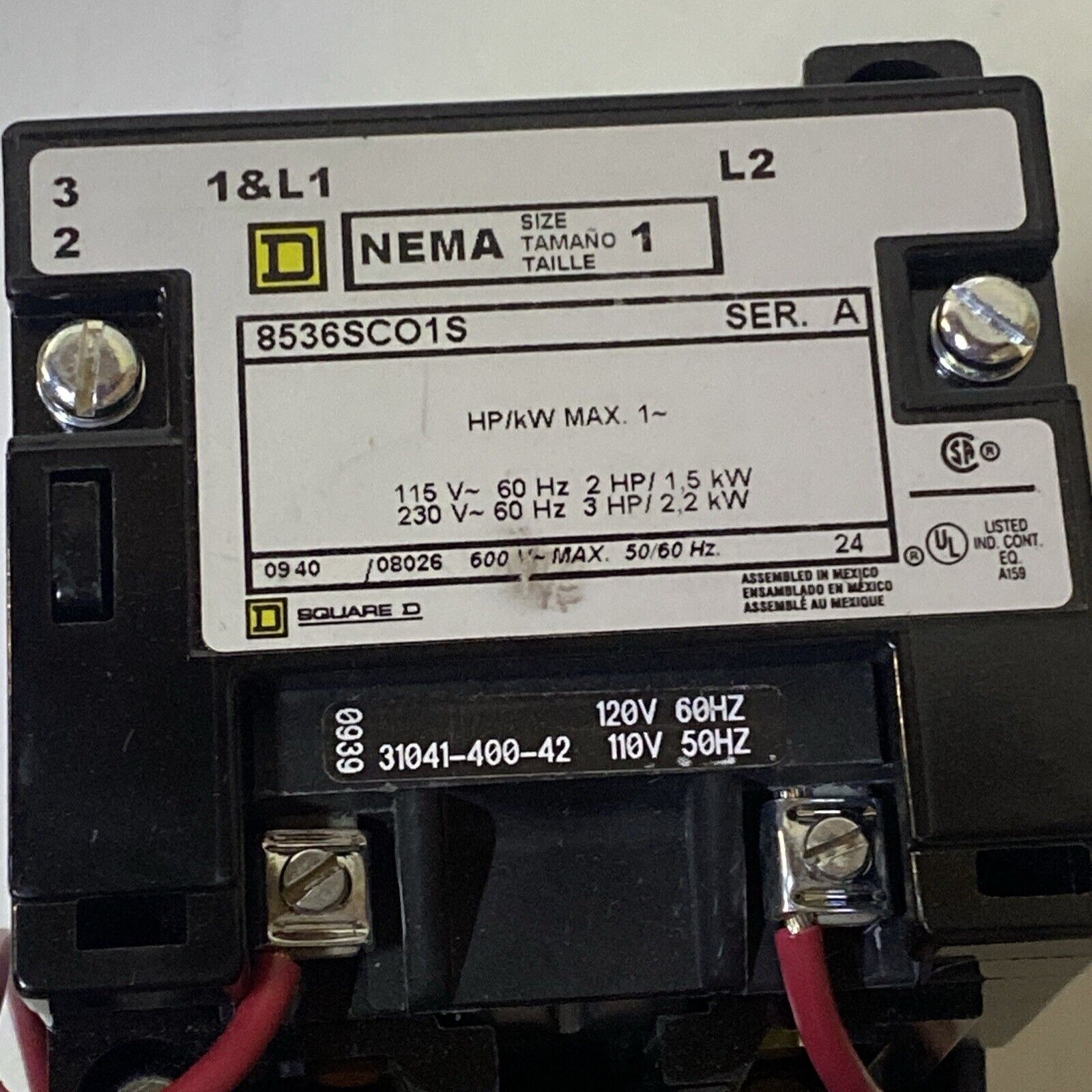 SQUARE D 8536SCO1V02S 120 VAC Single Phase 8536SCO1S Size 1 Starter Series A