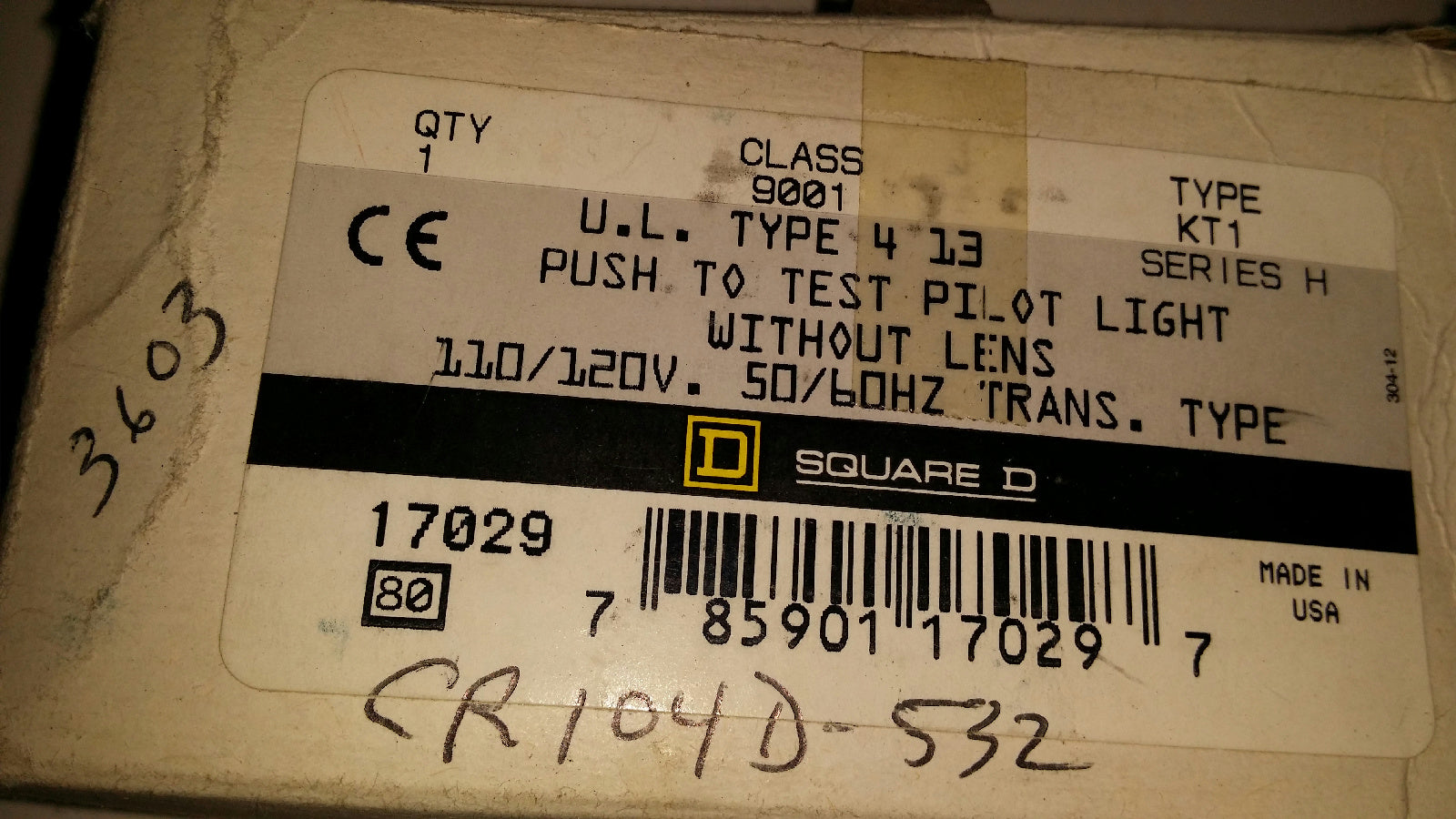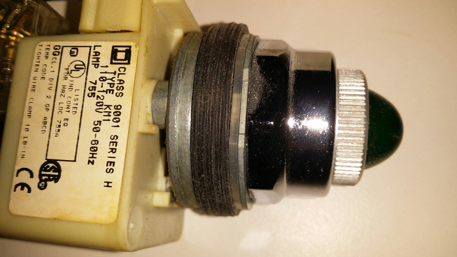 Square D CLASS 9001 TYPE KT1 120V Push TO Test Pilot Light Pushbutton Green LENS