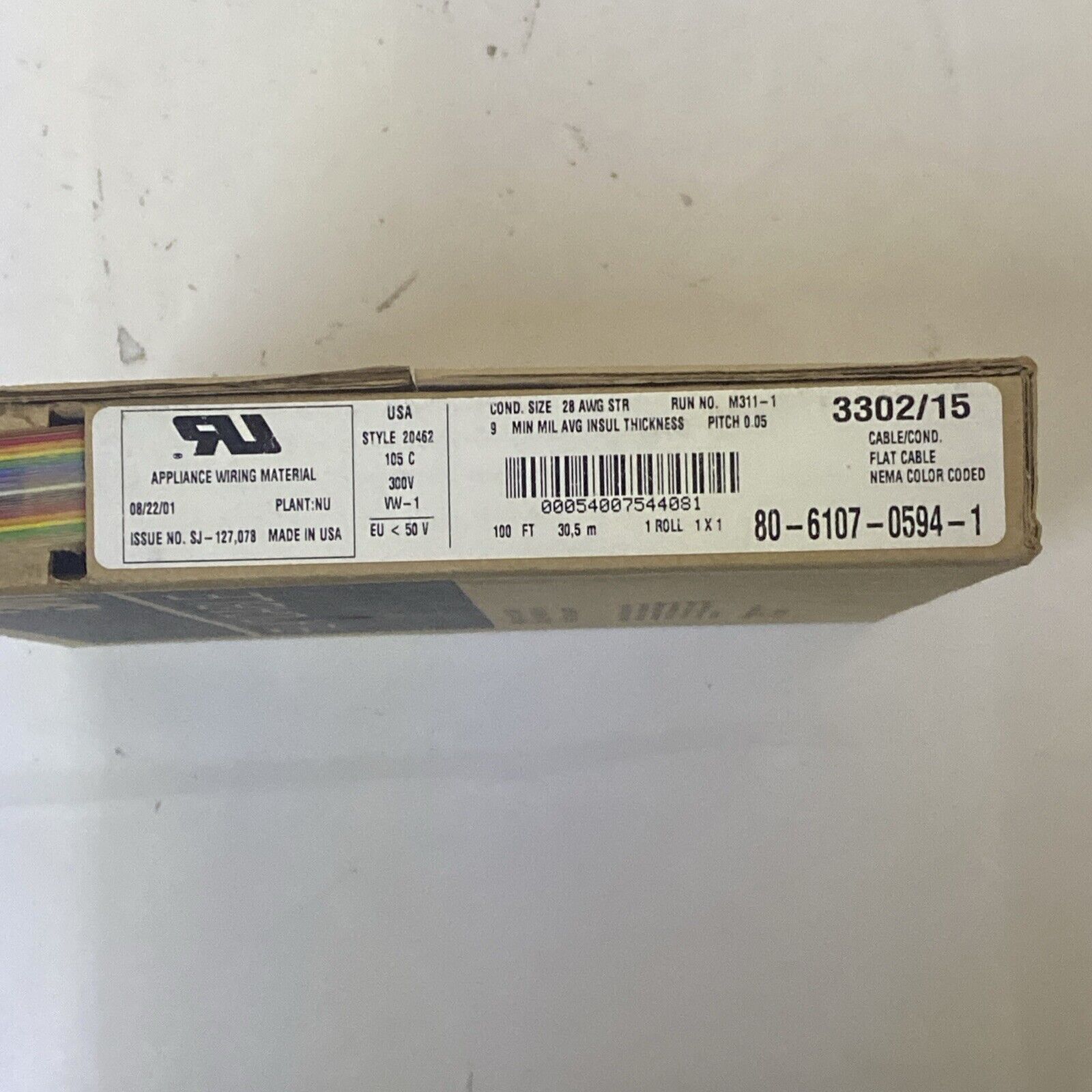 3M 3302/15 Flat Ribbon Cable Multiple 15 Conductors 100' NEMA Color Coded 0.05"