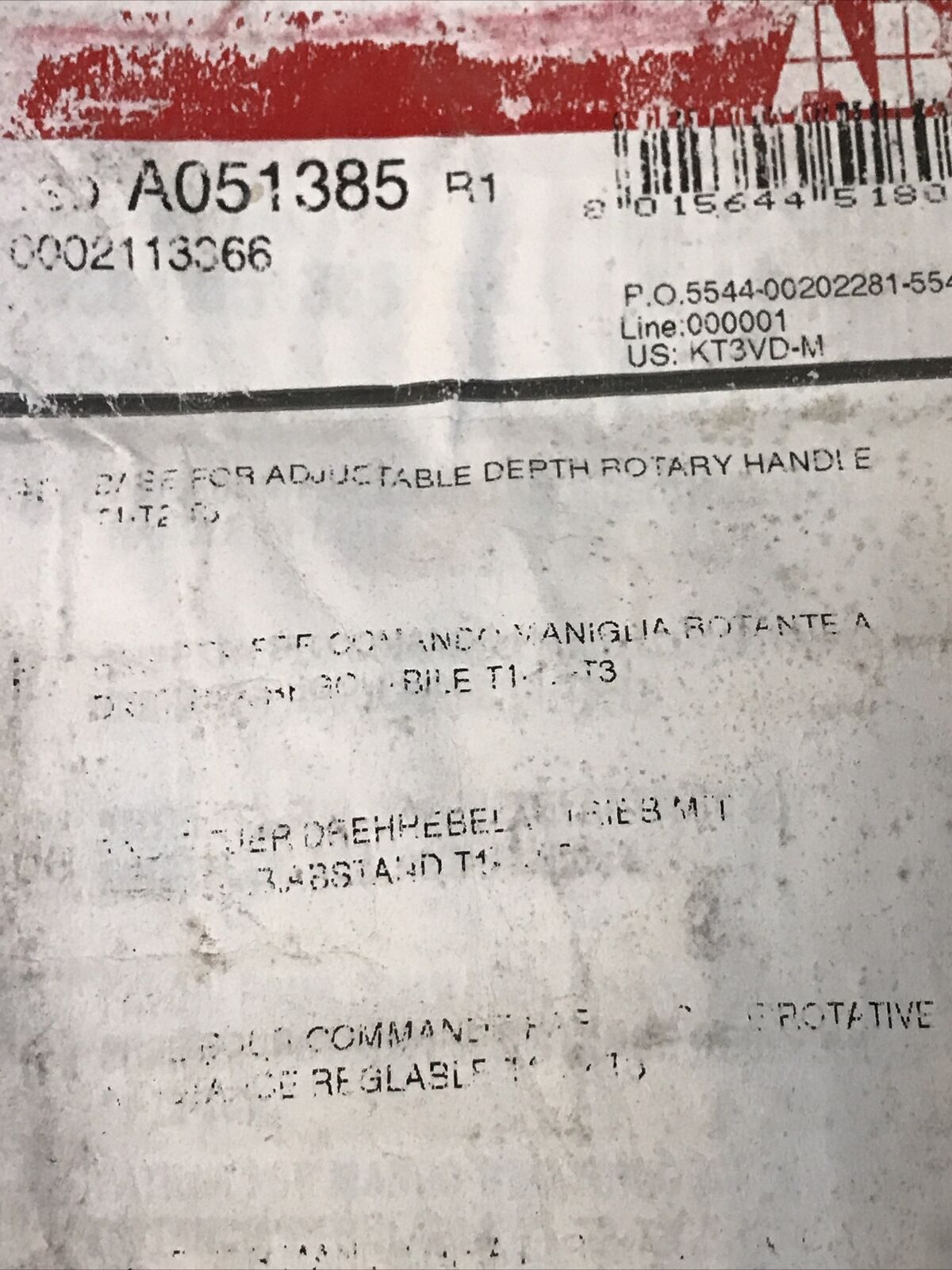 ABB SACE Tmax 1SD A051385 R1 Adjustable Depth Rotary Handle T1-T2-T3.