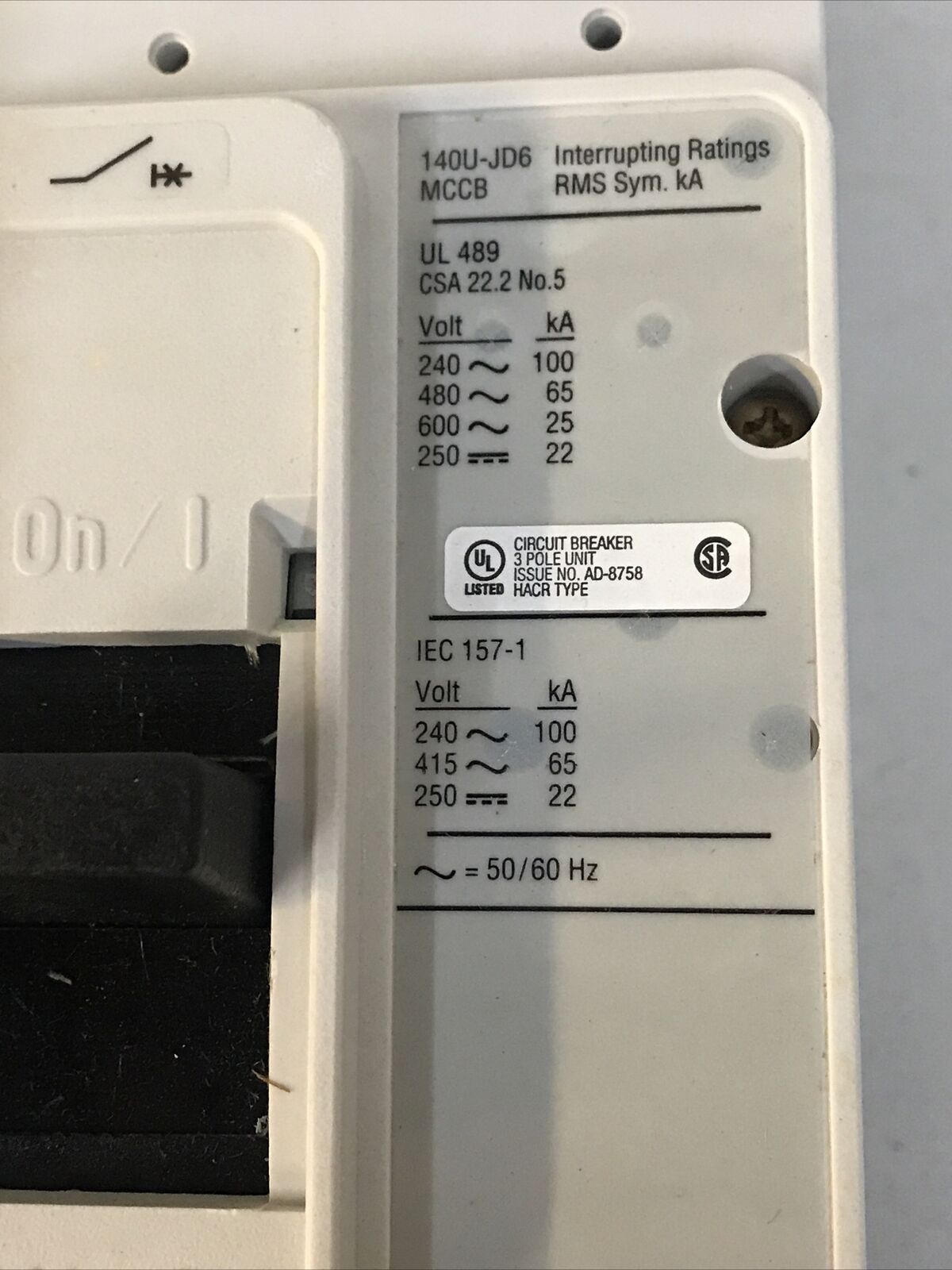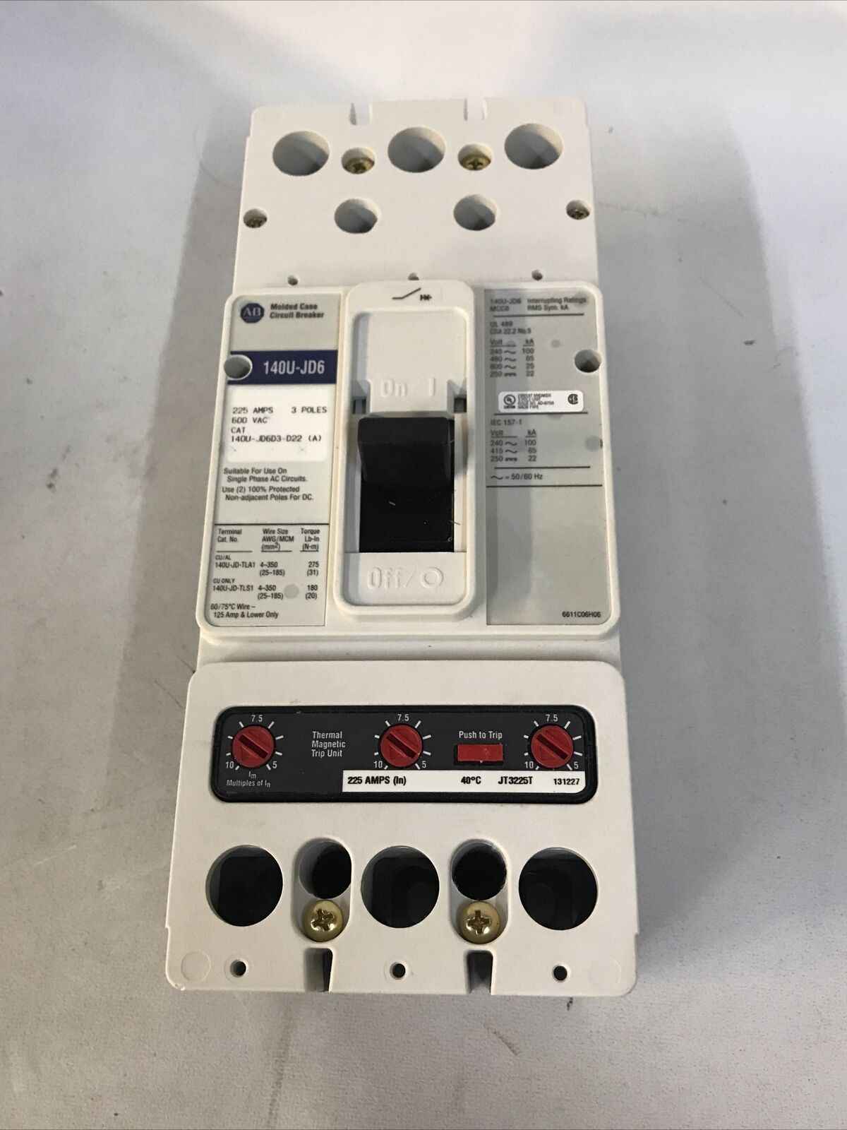 Allen Bradley 140U-JD6D3-D22 Ser. A 225A 600V 3 Pole Circuit Breaker 140U-JD6.
