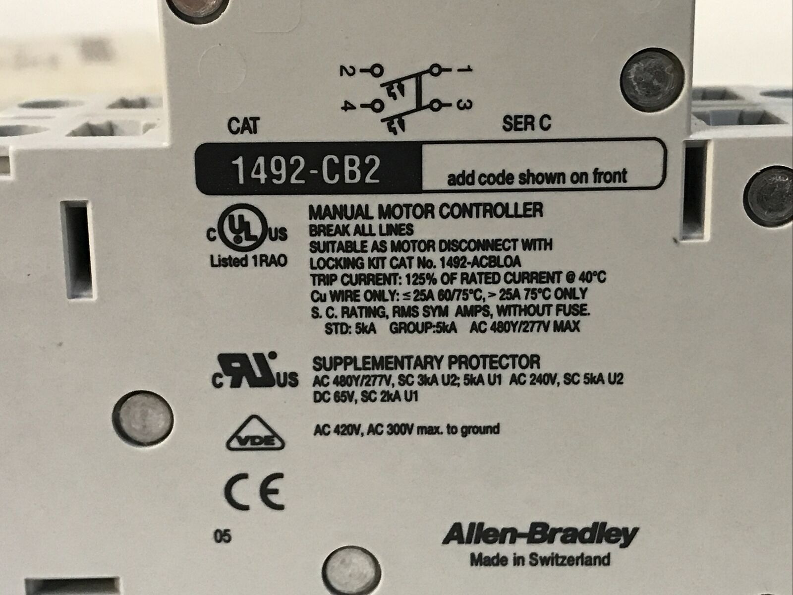 Allen Bradley 1492-CB2H150 Ser C Manual Motor Controller 15A 5HP 480Y/277V 1ph