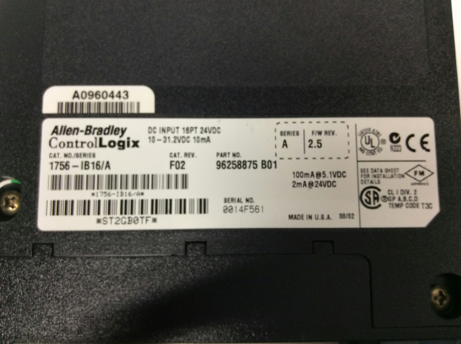 Allen-Bradley 1756-L55M13/A Logix5555 Processor Missing Front Panel