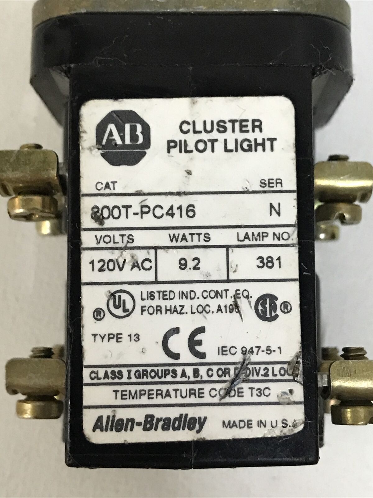 Allen Bradley 800T-PC416 Ser. N Cluster Pilot Light 120 VAC 800TPC416 Lamp 381.