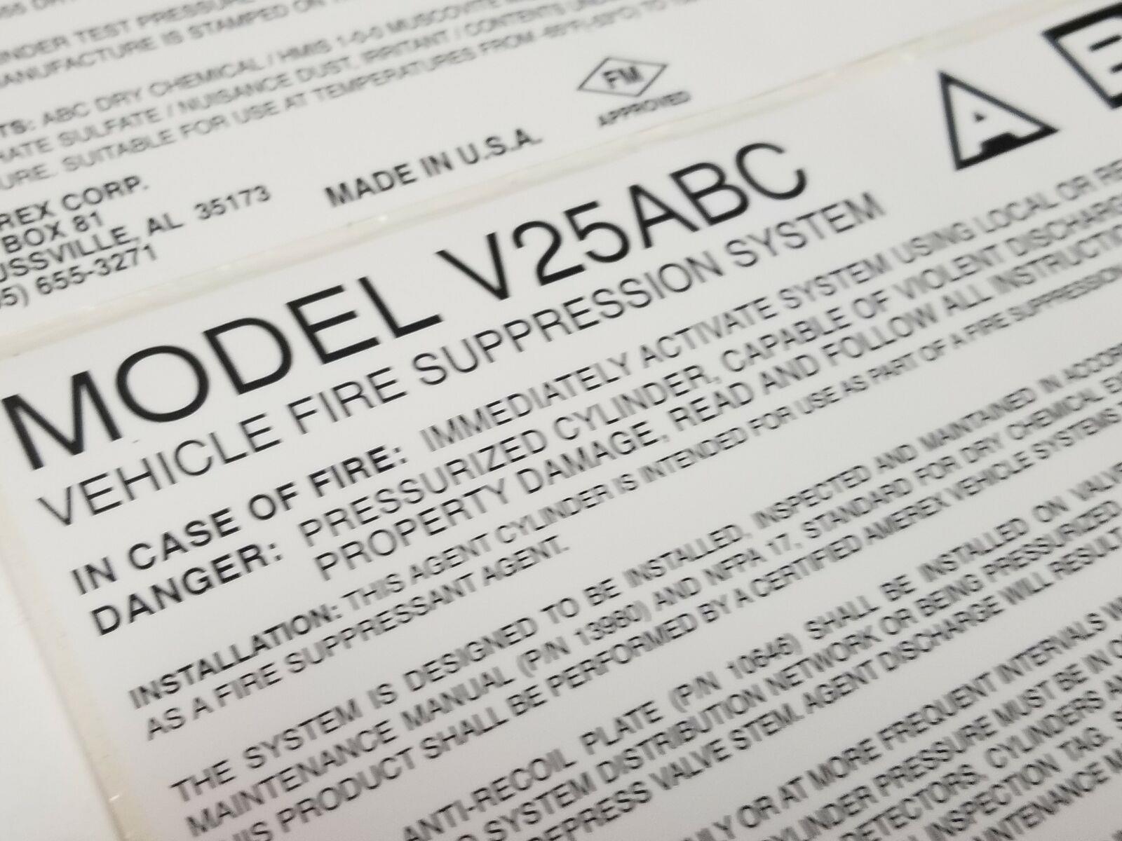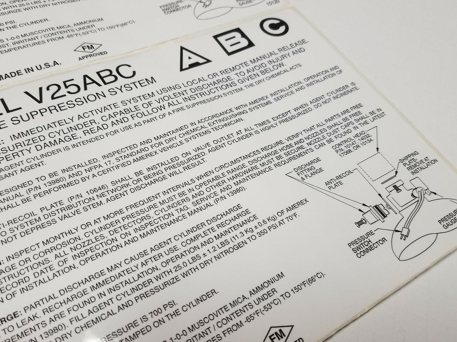 Amerex V25ABC Vehicle Fire Suppression System 8x6 Vinyl Self Adhesive Label