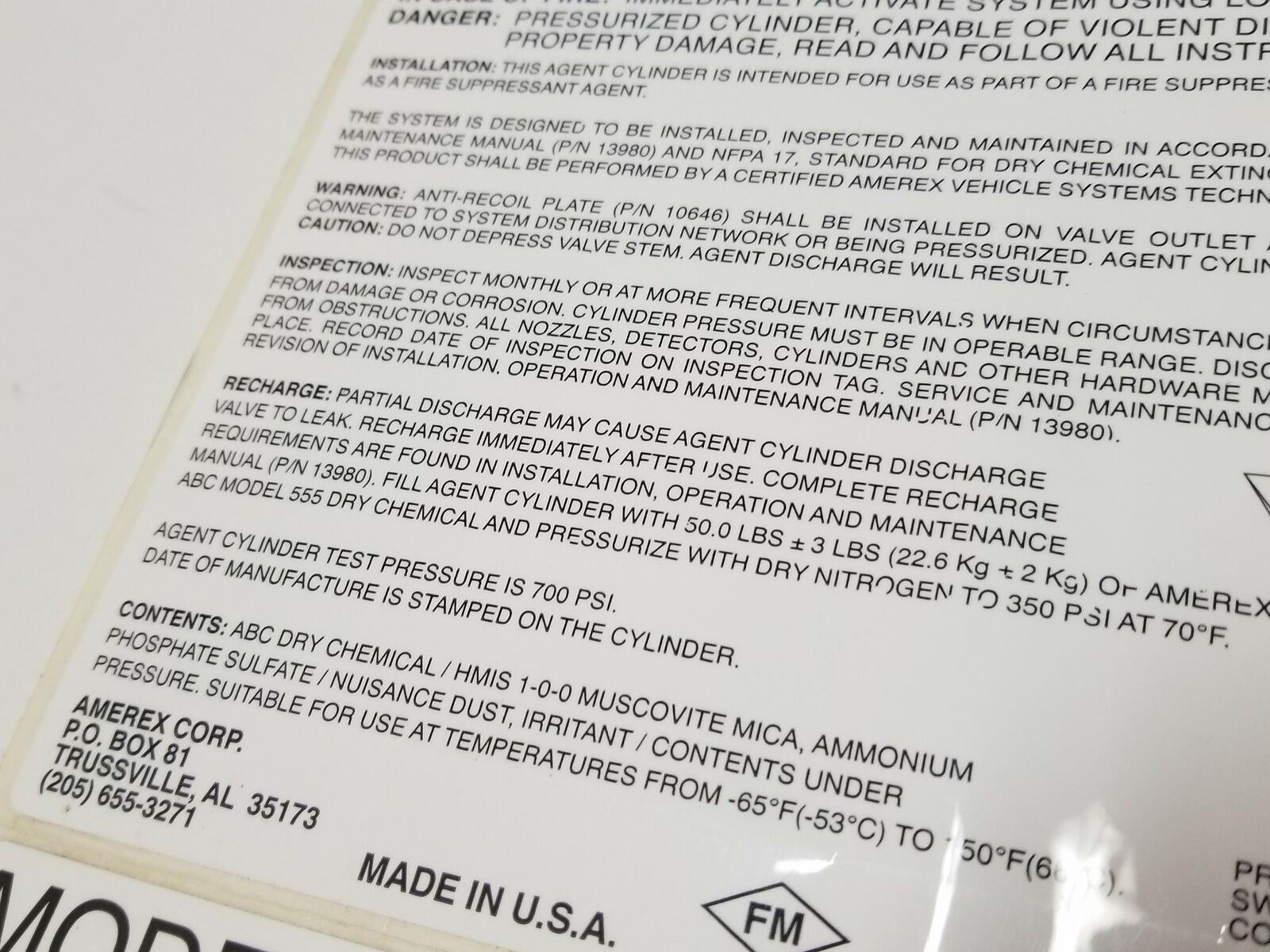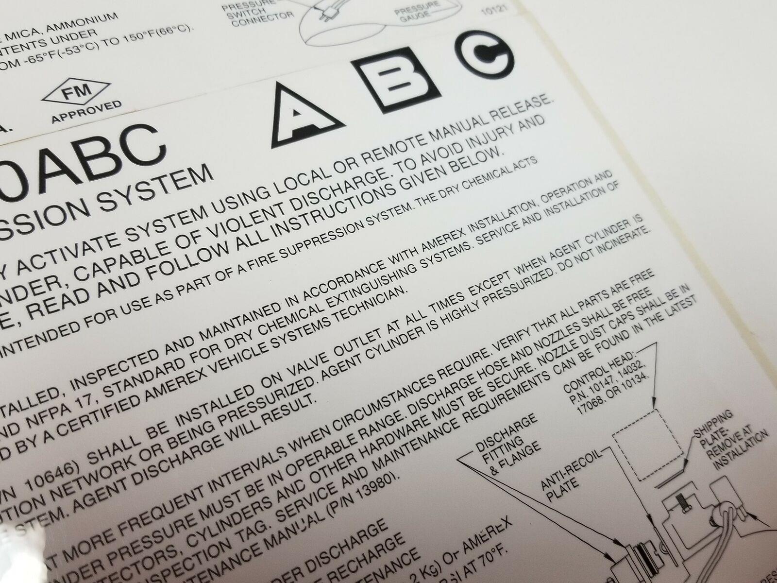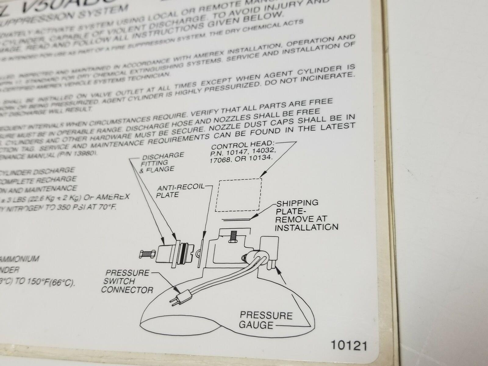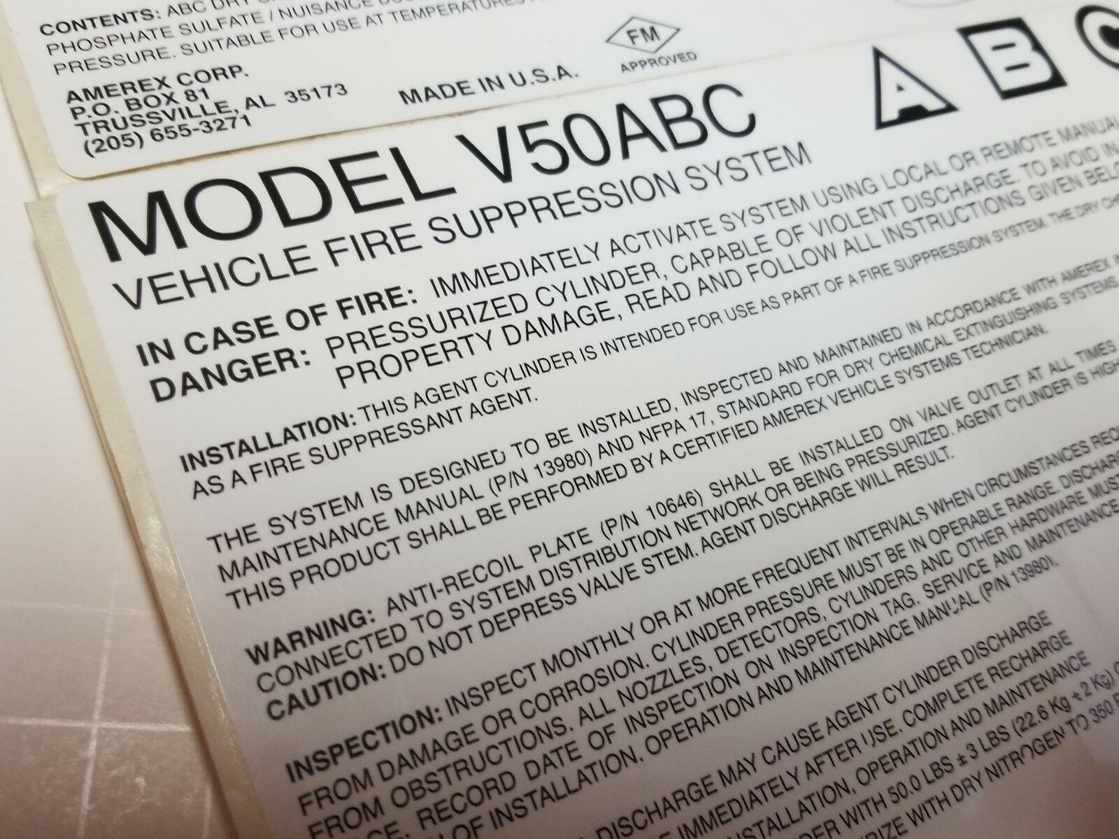Amerex V50ABC Vehicle Fire Suppression System 8x6 Vinyl Self Adhesive Label