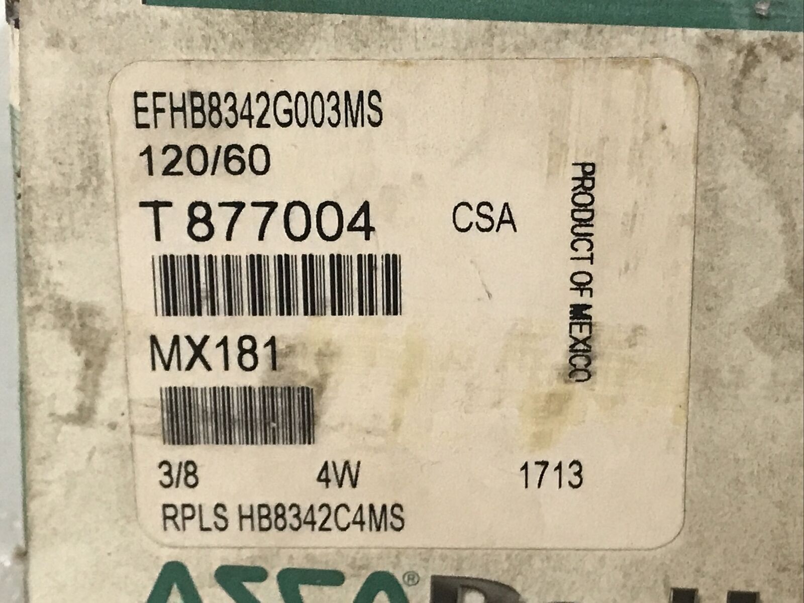 Asco EFHB8342G003MS Solenoid Valve 3/8" 20.1 Watts.