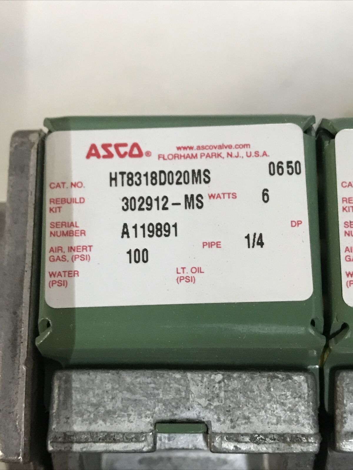 Asco HT8318D020MS 120/60 DA VALVE Assembly Valve Solenoid Gang Mount.