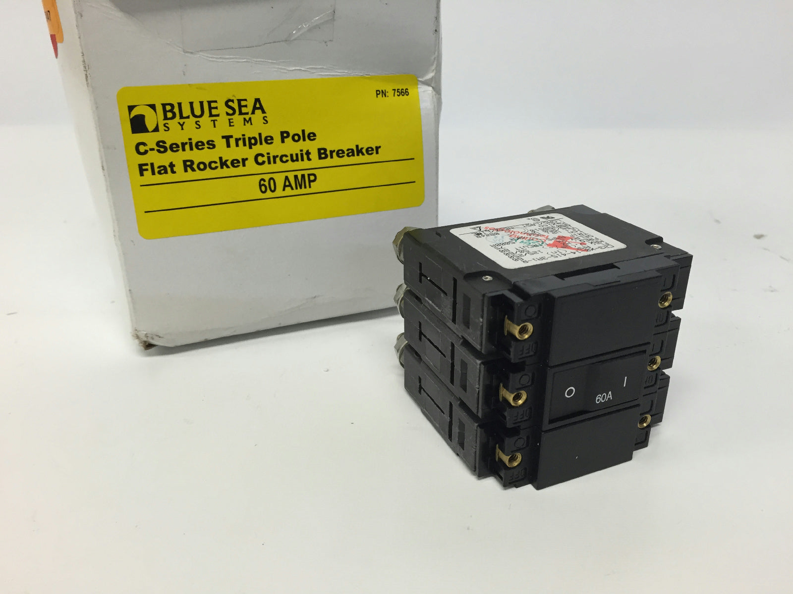 Blue Sea C-Series Flat Rocker Circuit Breaker 3 Pole 60A C23-X0-14-415-3A1R