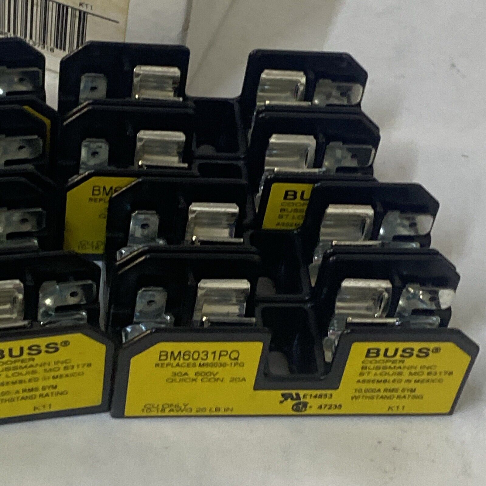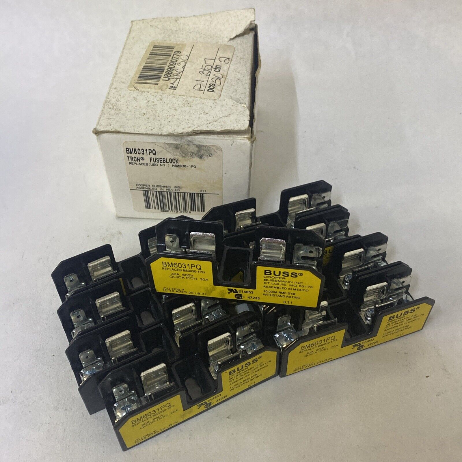 (Box Of 9) Bussmann BM6031PQ Tron Buss Fuse Blocks 30A 600V 10-18 AWG