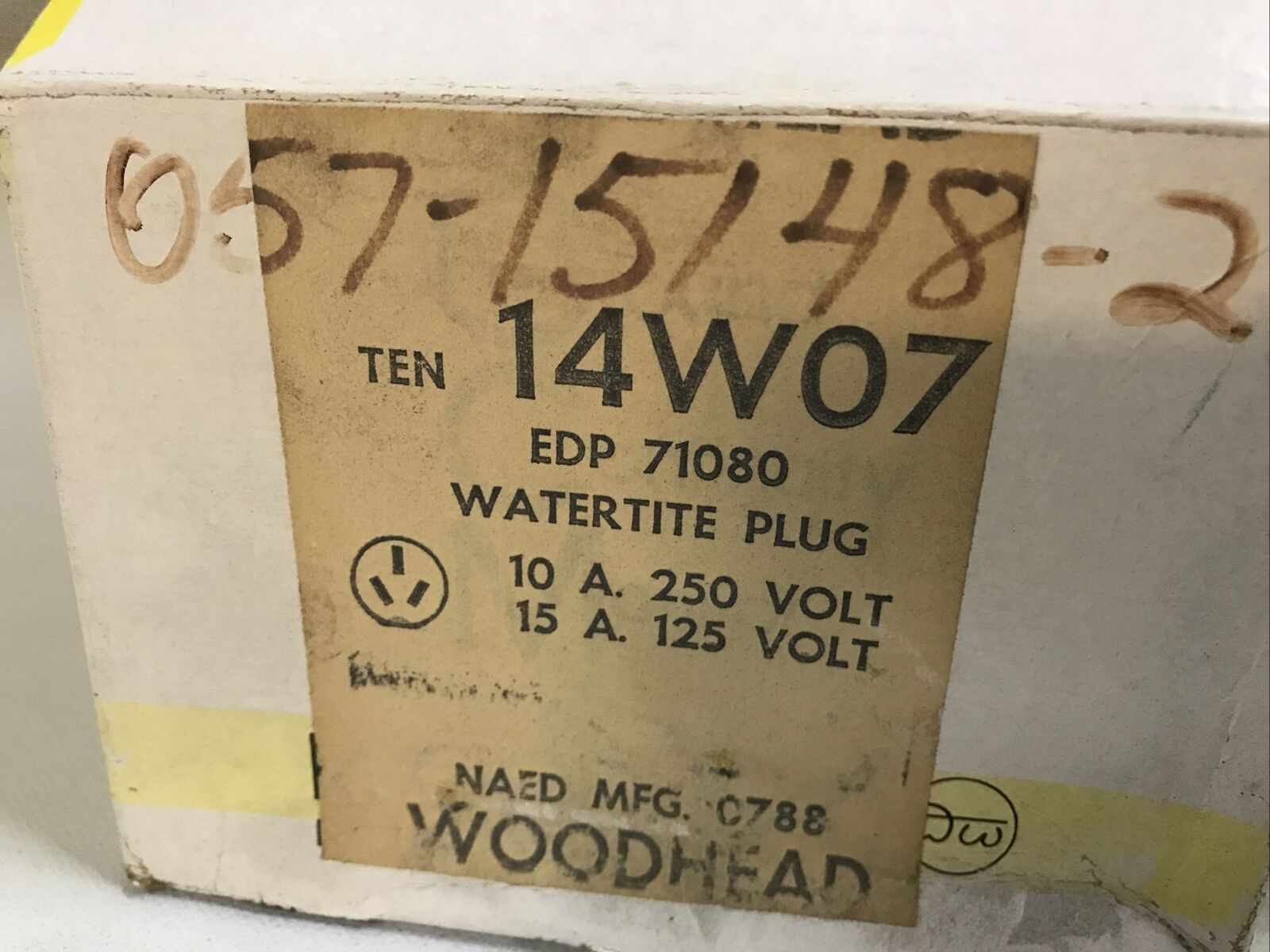 Daniel Woodhead 14W07 Watertite Plug 15A 125V 10A 250V EDP 71080 Box of 10.