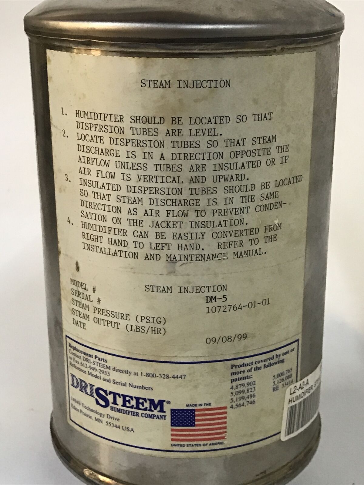 Dristeem Humidifier DM-5 Steam Injector Steam Separator.