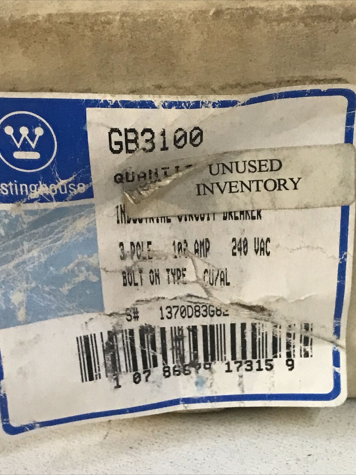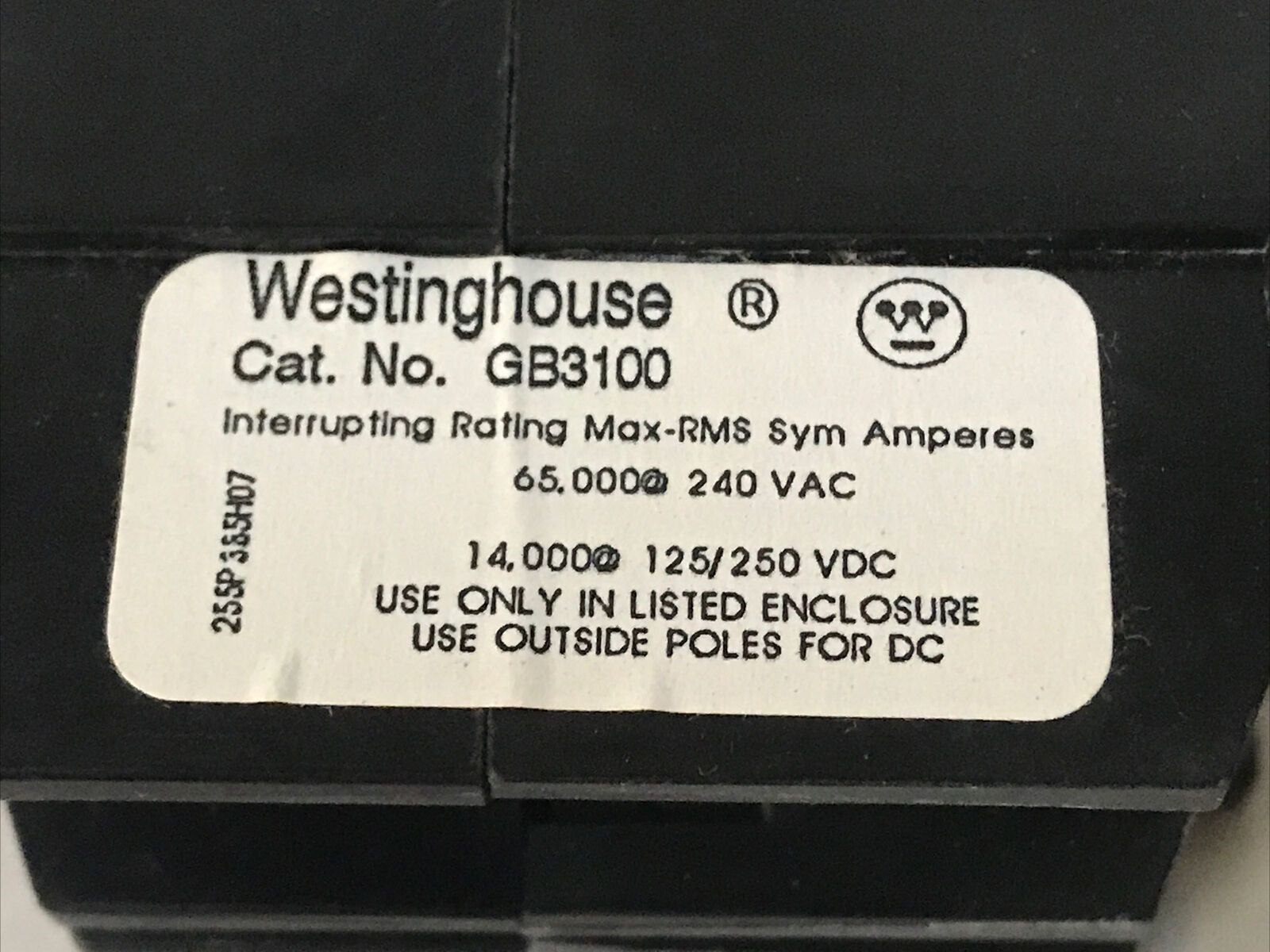 Eaton Cutler Hammer GB3100 3 Pole 100 Amp 240VAC 125/250VDC Circuit Breaker