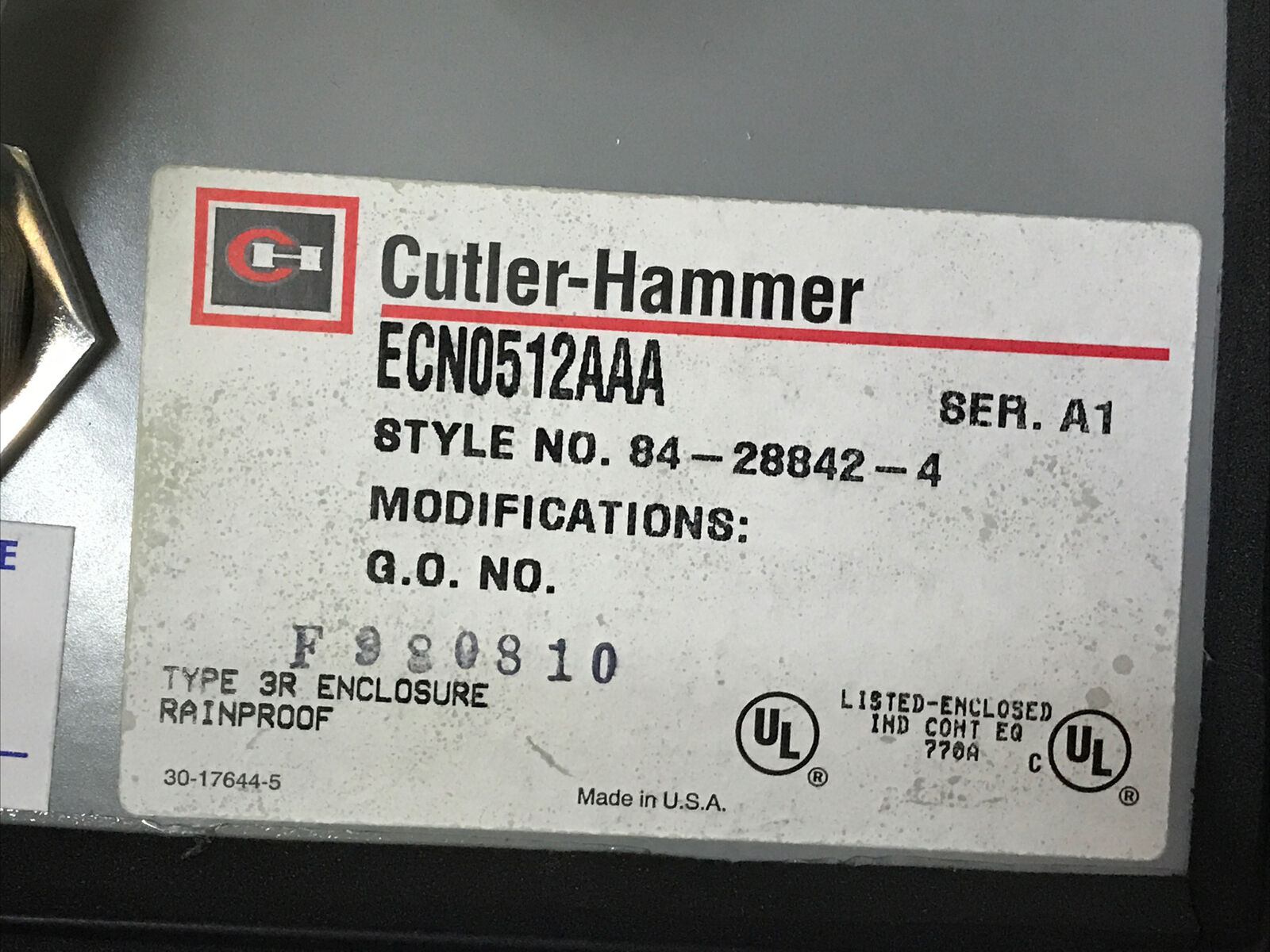 Eaton ECN0512AAA Nema Size 1 FVNR Non-Combination 3 PH 84-28842-4 110/120 VAC.