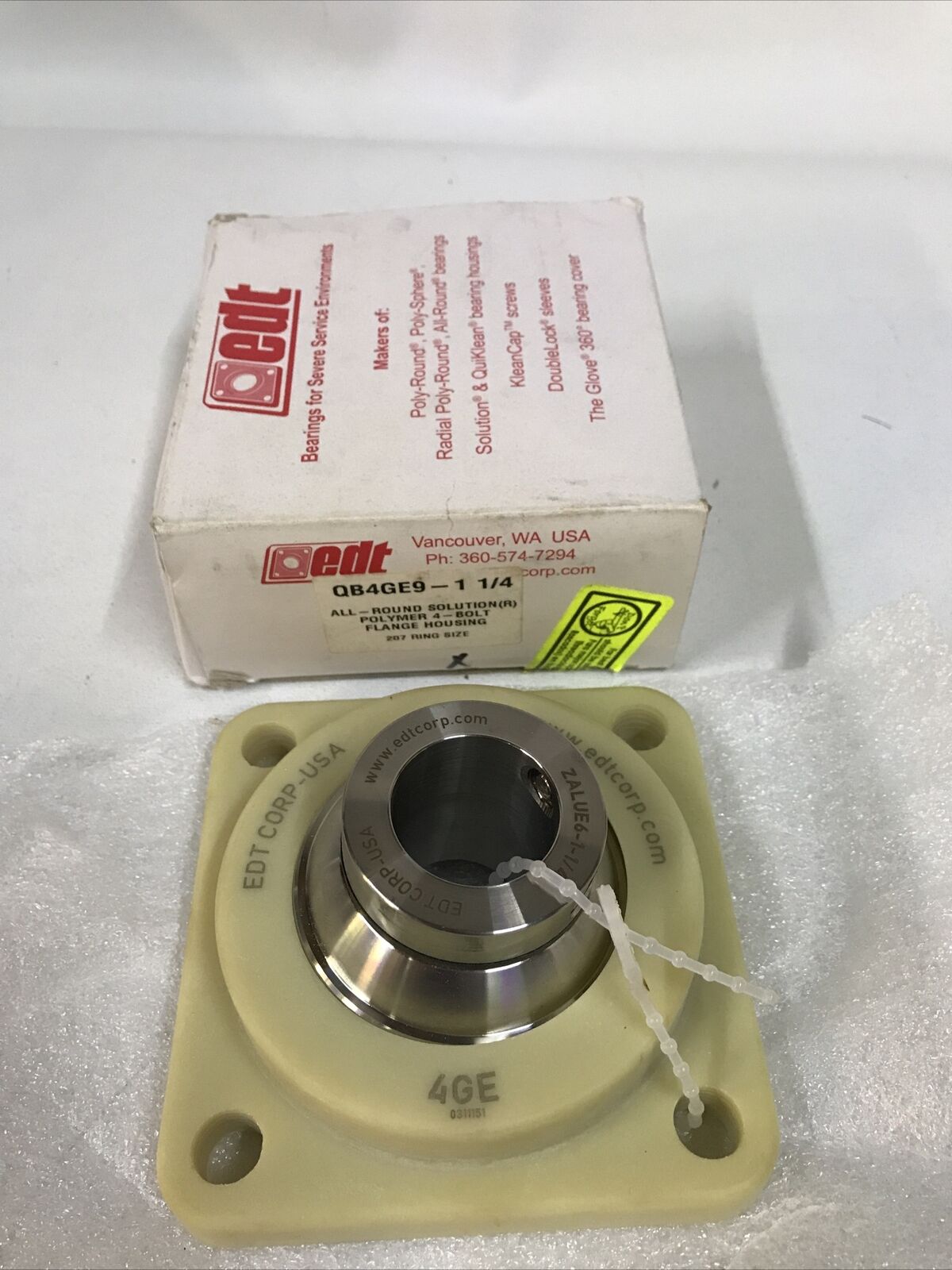 EDT QB4GE9-1-1/4 QB4GE9114 Polymer 4 Bolt Flange Housing 207 Ring Size.