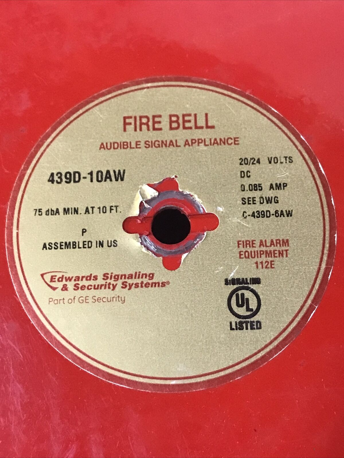 Edwards Signaling 439D-10AW-R Red Fire Alarm Bell 20 To 24 VDC.
