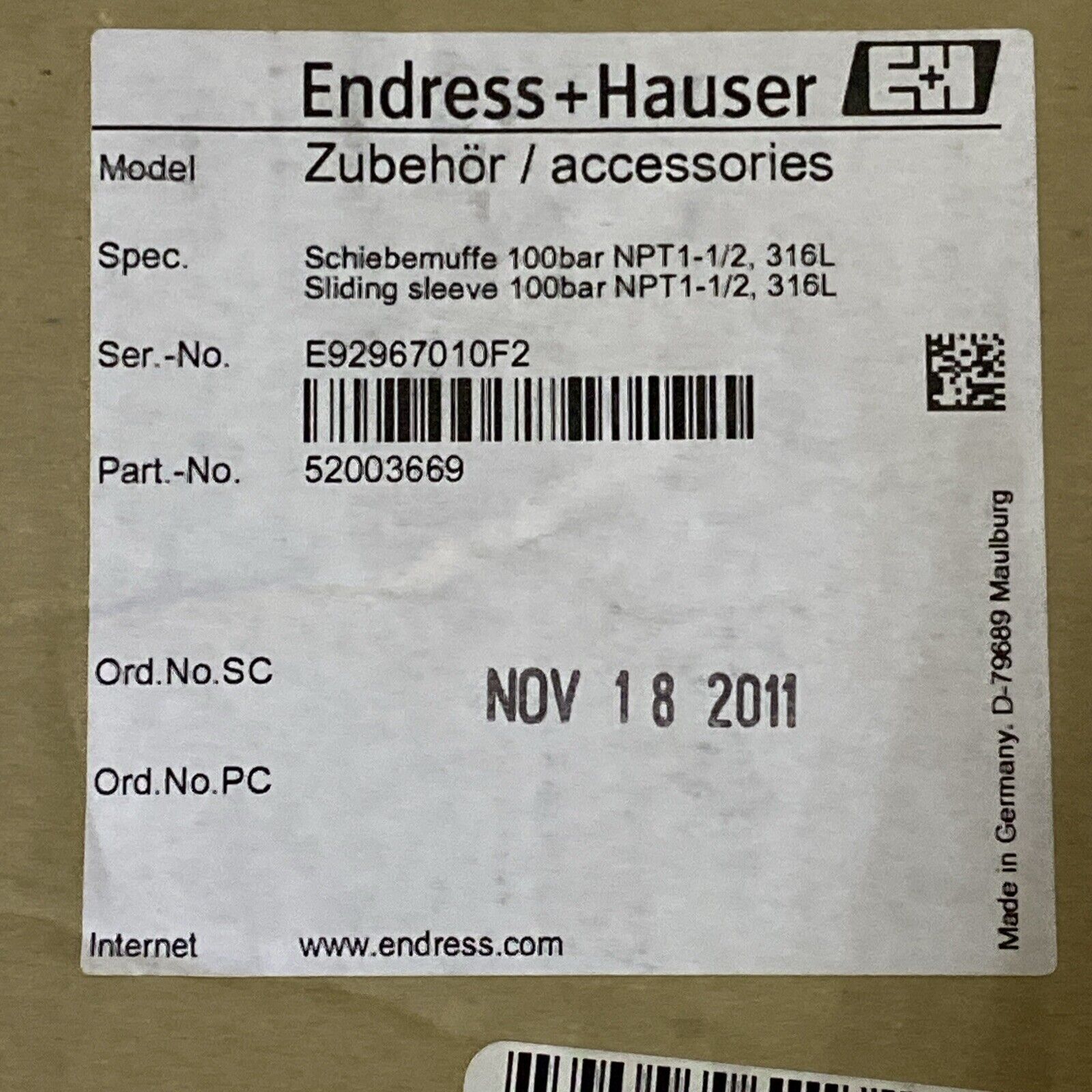 ENDRESS HAUSER 52003669 Sliding Sleeve 100 Bar NPT 1-1/2 316L PN100