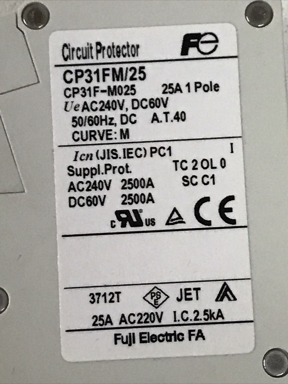 Fuji CP31FM /25 Circuit Breaker 1P 25A AC240V DC60V CP31F-M025 With Shields