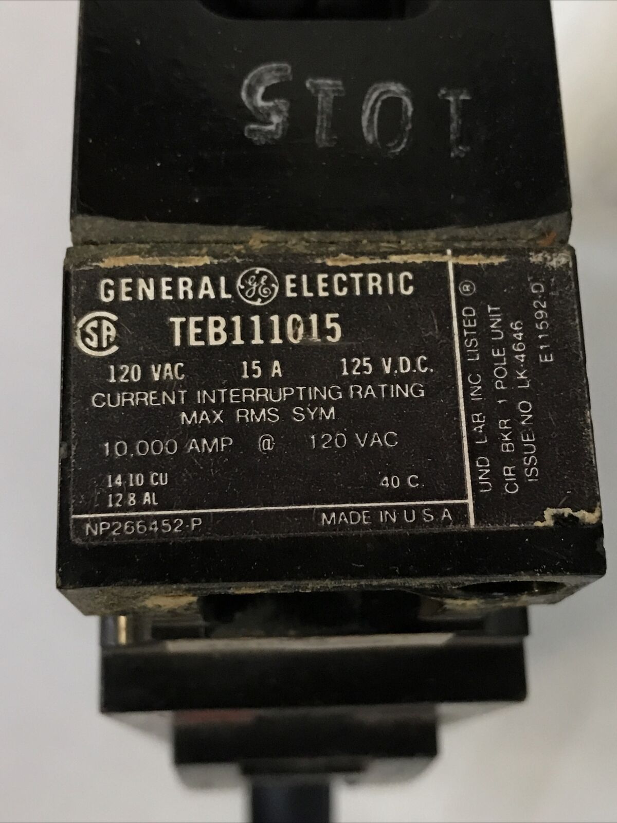 GE TEB111015 15A AMP 1P POLE 10kA 120V Feed Through Circuit Breaker