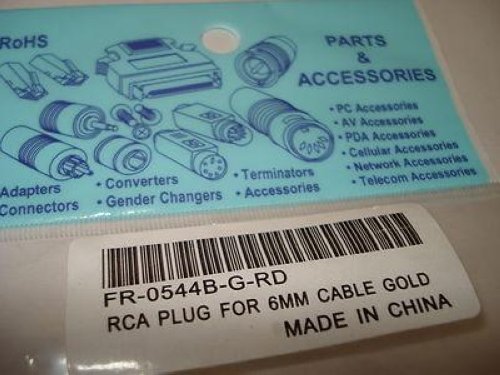 Gold FR-0544B-G-RD RCA Plug / Connector For 6MM Cable NSFP LOT OF 4