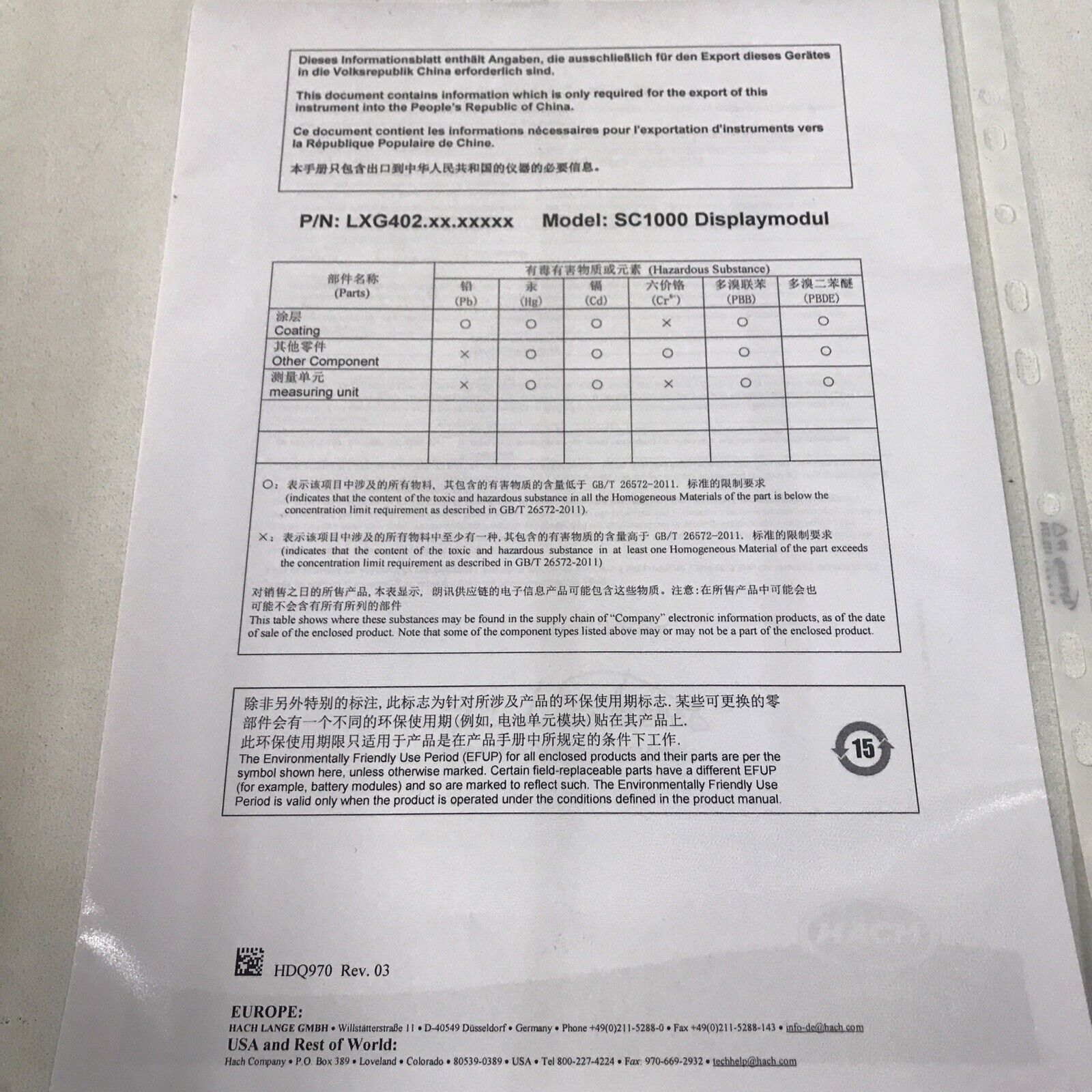 Hach LXG402.99.00032 Display Unit For SC1000.