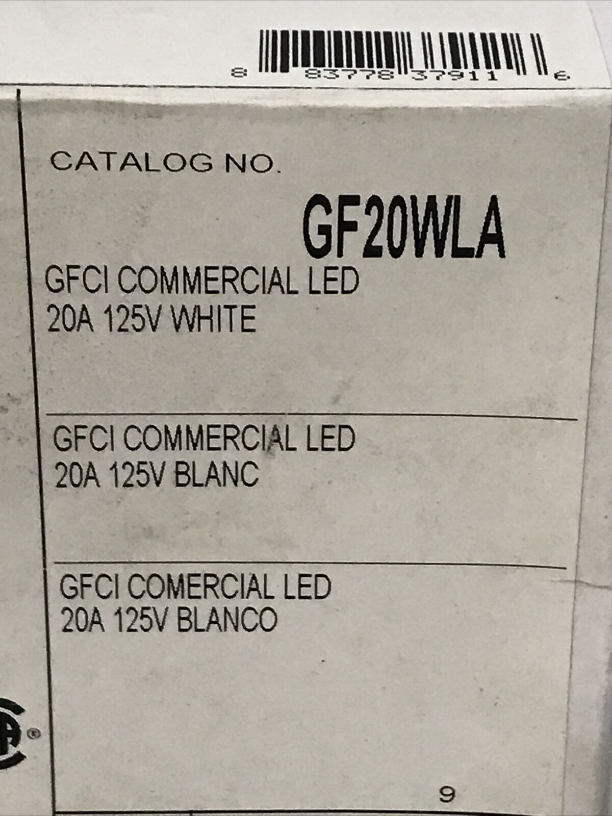 HUBBELL GF20WLA 20A 125V White GFCI Commercial LED Duplex Outlet Nema 5-20R.