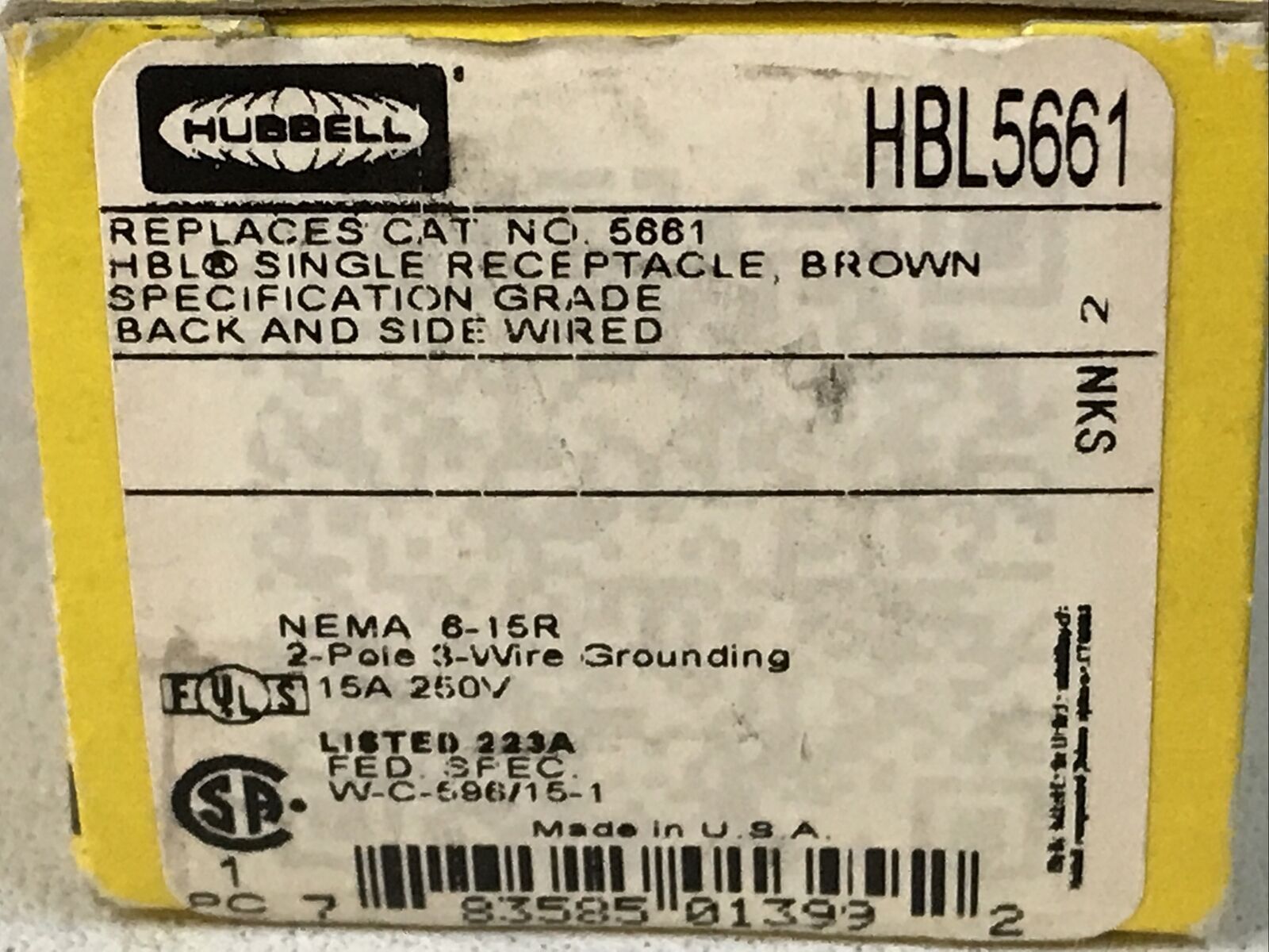 Hubbell HBL5661 Brown Receptacle 15AMP 250VAC 3Wire NEMA 6-15R