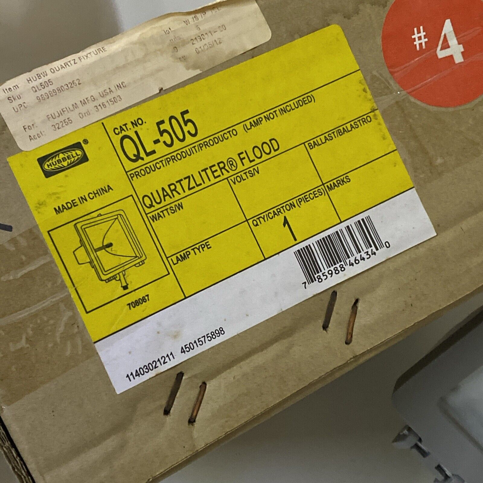 Hubbell QL505 Quartzliter Flood Light Fixture 500w *One Hinge Broke*
