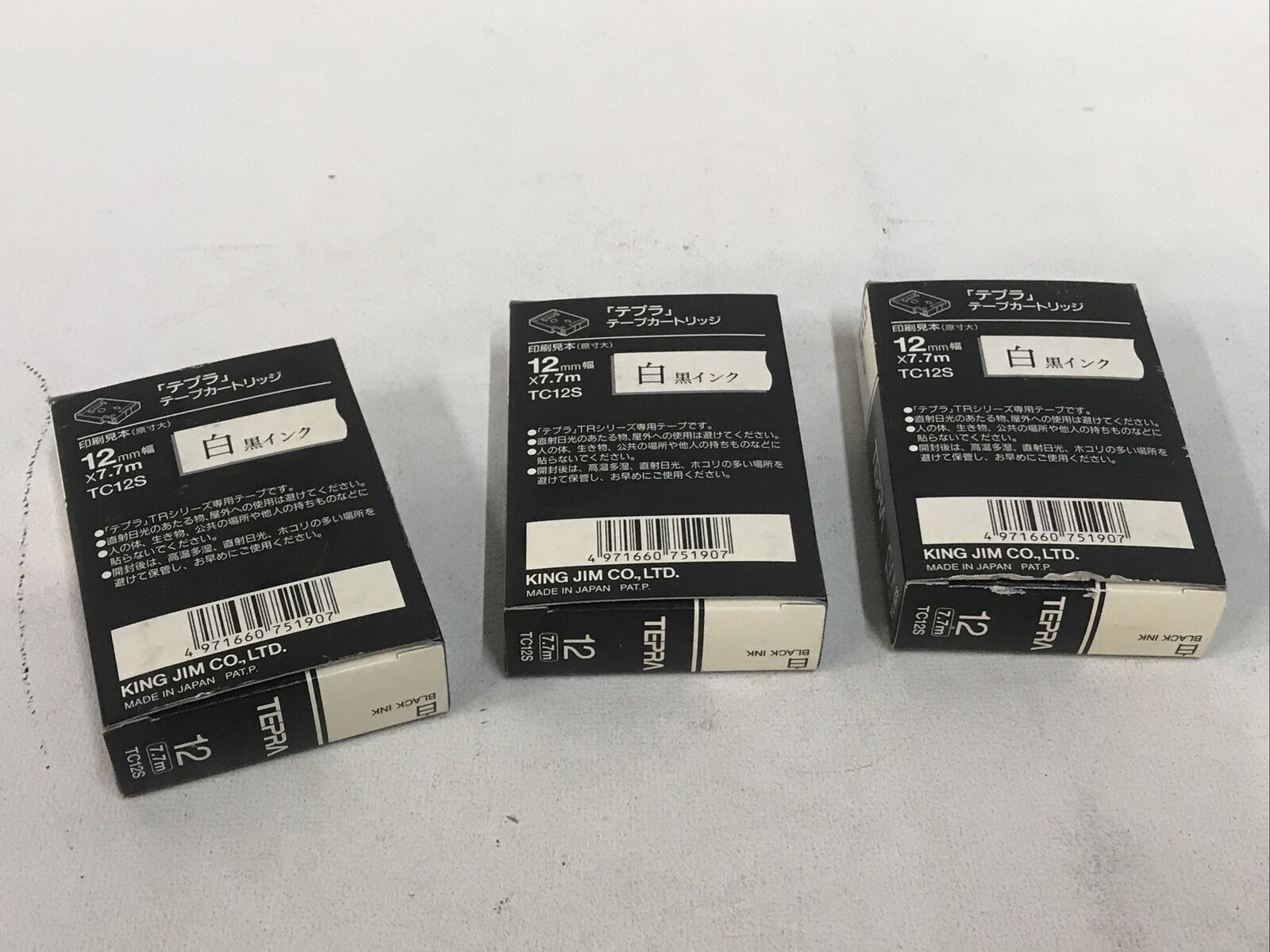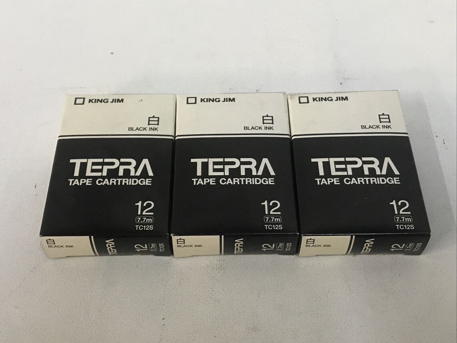 King Jim Co TC12S Tepra TC 12 Tape Cartridge 7.7m Black Ink *Lot Of 3*