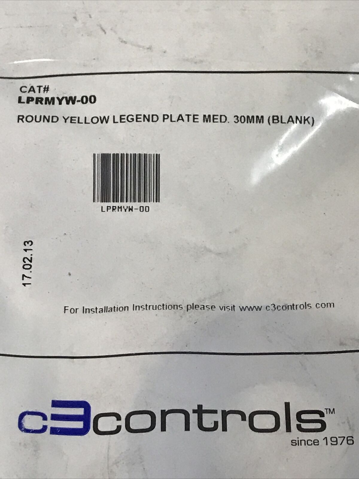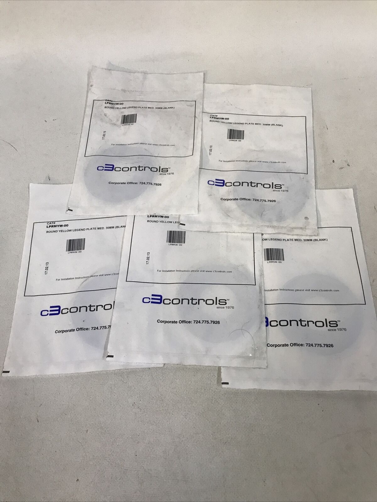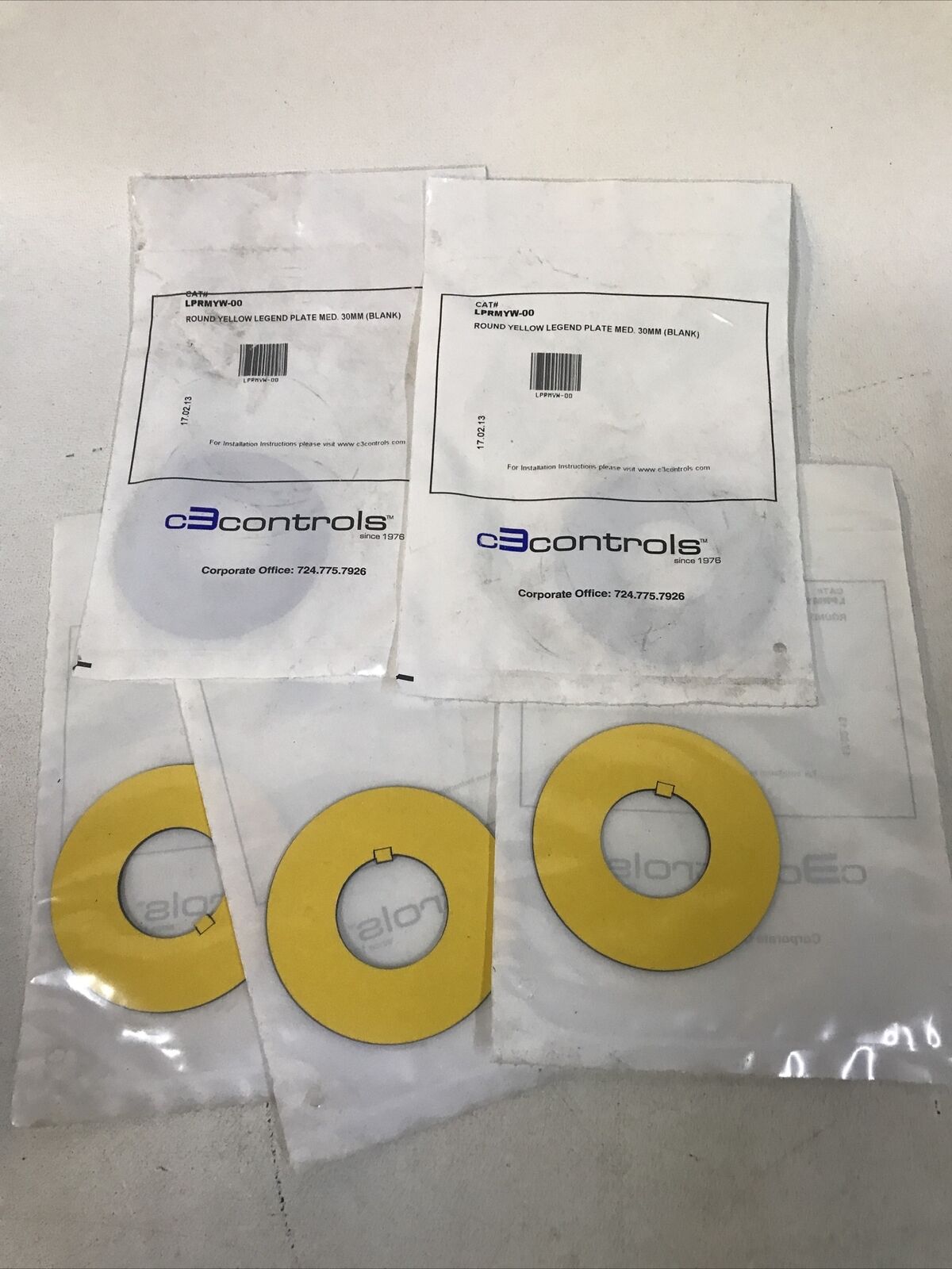 (LOT OF 5) C3 Controls LPRMYW-00 Blank Yellow Legend Button Label Plate 30mm