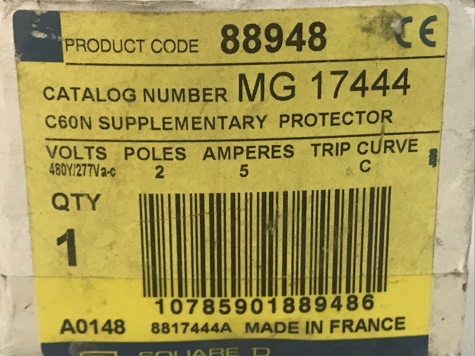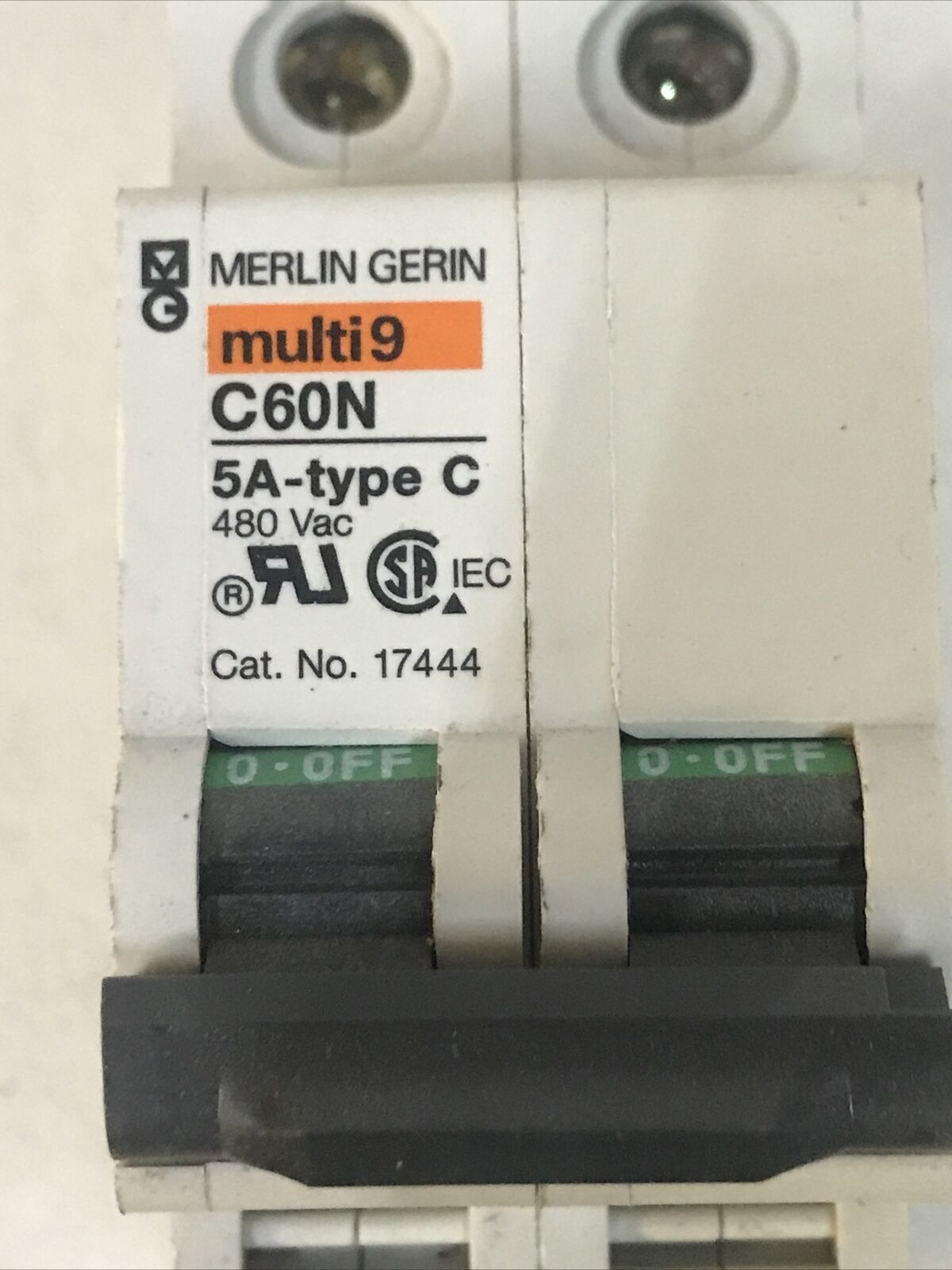 Merlin Gerin Multi-9 C60N C20 2-Pole Circuit Breaker 480V 5A Type C Curve