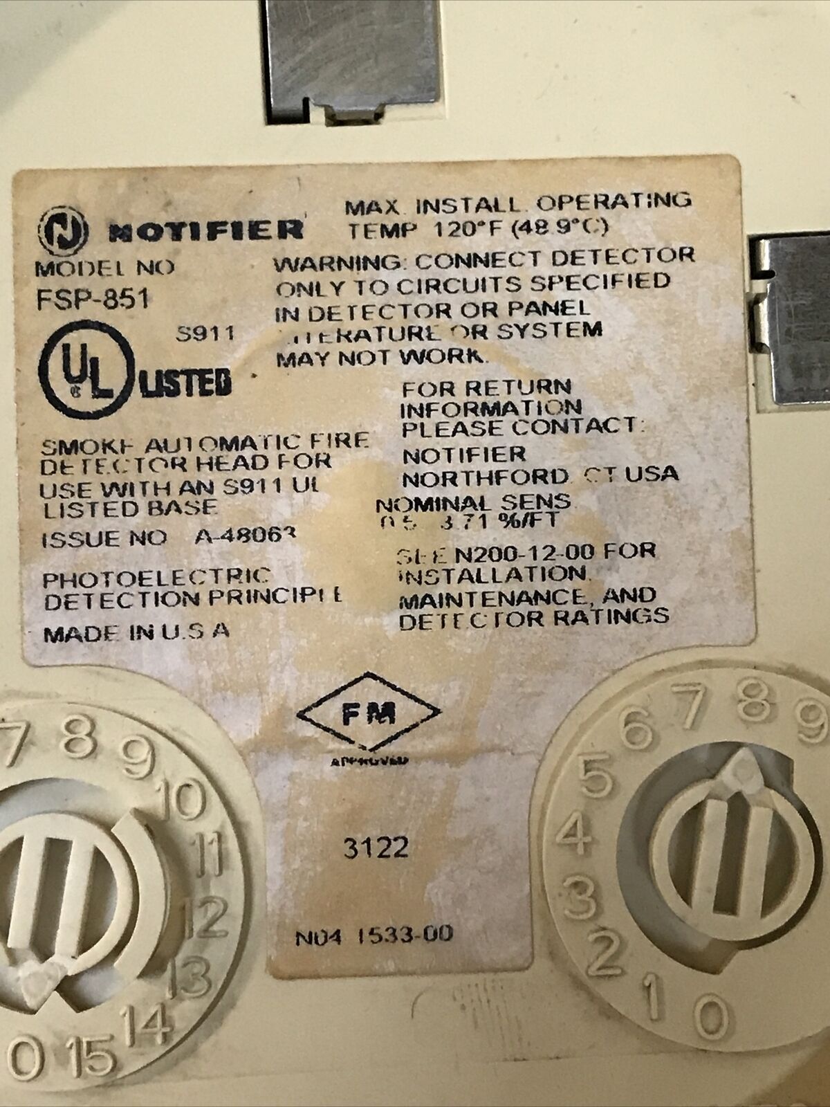 Notifier FSP-851 Intelligent Low-Profile Smoke Detector.